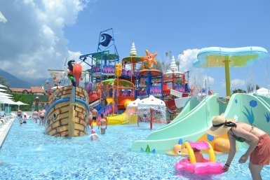 Купальная зона освещена прожекторами, спасатели дежурят до закрытия. Есть лежаки, полотенца и кулеры с питьевой водой. Можно заказать еду и напитки через QR-код. Доставляют прямо к шезлонгу.
