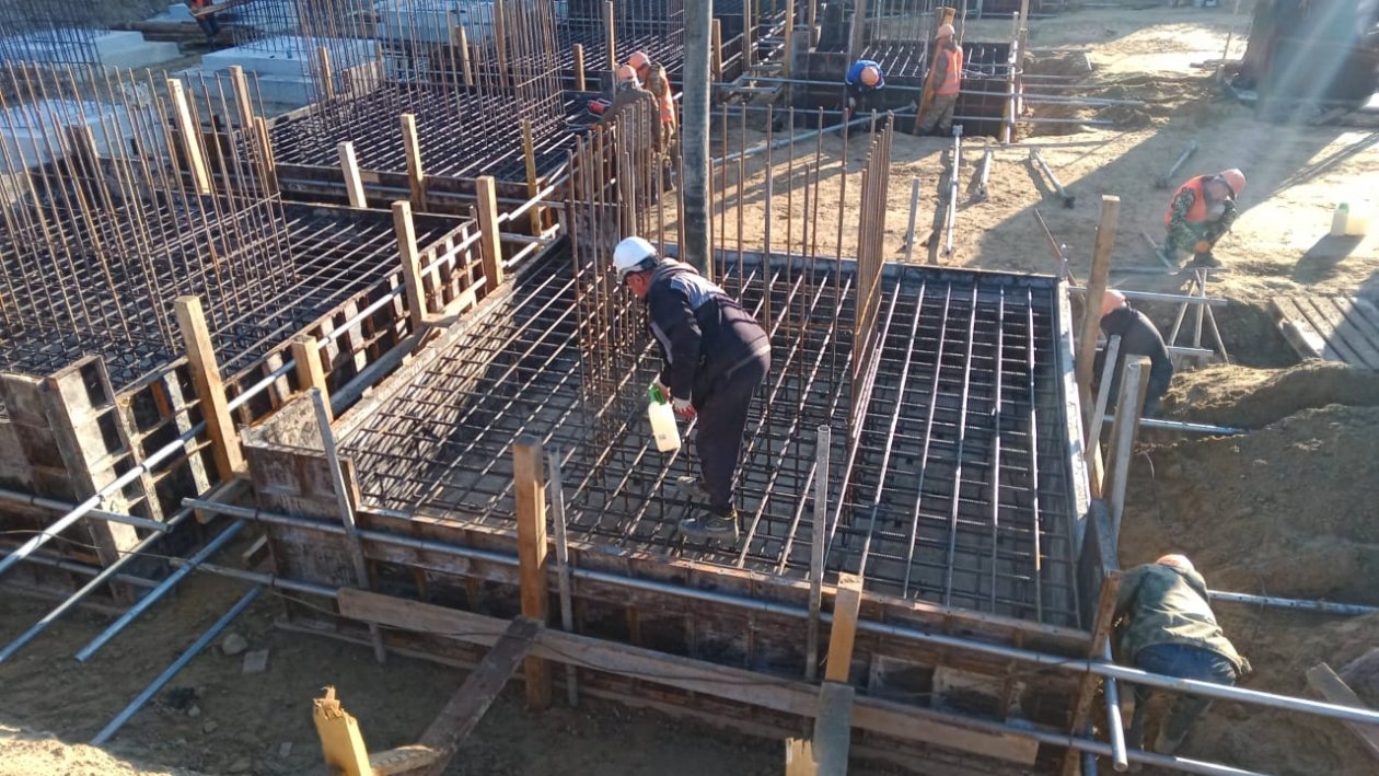 На сегодняшний день завершены монтаж фундаментной плиты контактного резервуара, армирование стен, перенос инженерных сетей из пятна застройки. Проводится монтаж перекрытий, подготовка к возведению стен контактного резервуара, выполнена разработка котлована под здания водоочистки и административно-бытового корпуса. Также ведется работа по устройству фундаментов.