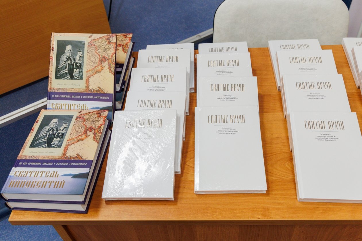 Презентация прошла также в Сахалинской областной клинической больнице. В библиотеки медучреждения и колледжа передали несколько экземпляров книги о святых врачах. Кроме этого, колледж получил в дар книги, посвященные жизни и трудам святителя Иннокентия Московского.