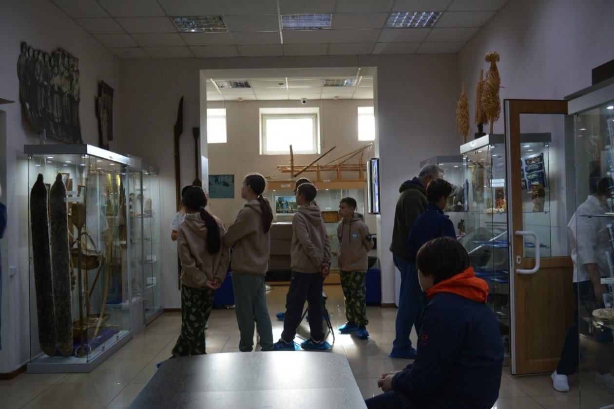 Участники отряда увидели этнографические коллекции, зал освоения Сахалина, экспозиции времён Карафуто, Великой Отечественной войны и СССР. Экскурсию провела Наталья Викторовна Третьякова. "Залы музея создают атмосферу прошлого, которая захватывает с первых минут", — рассказали ребята.