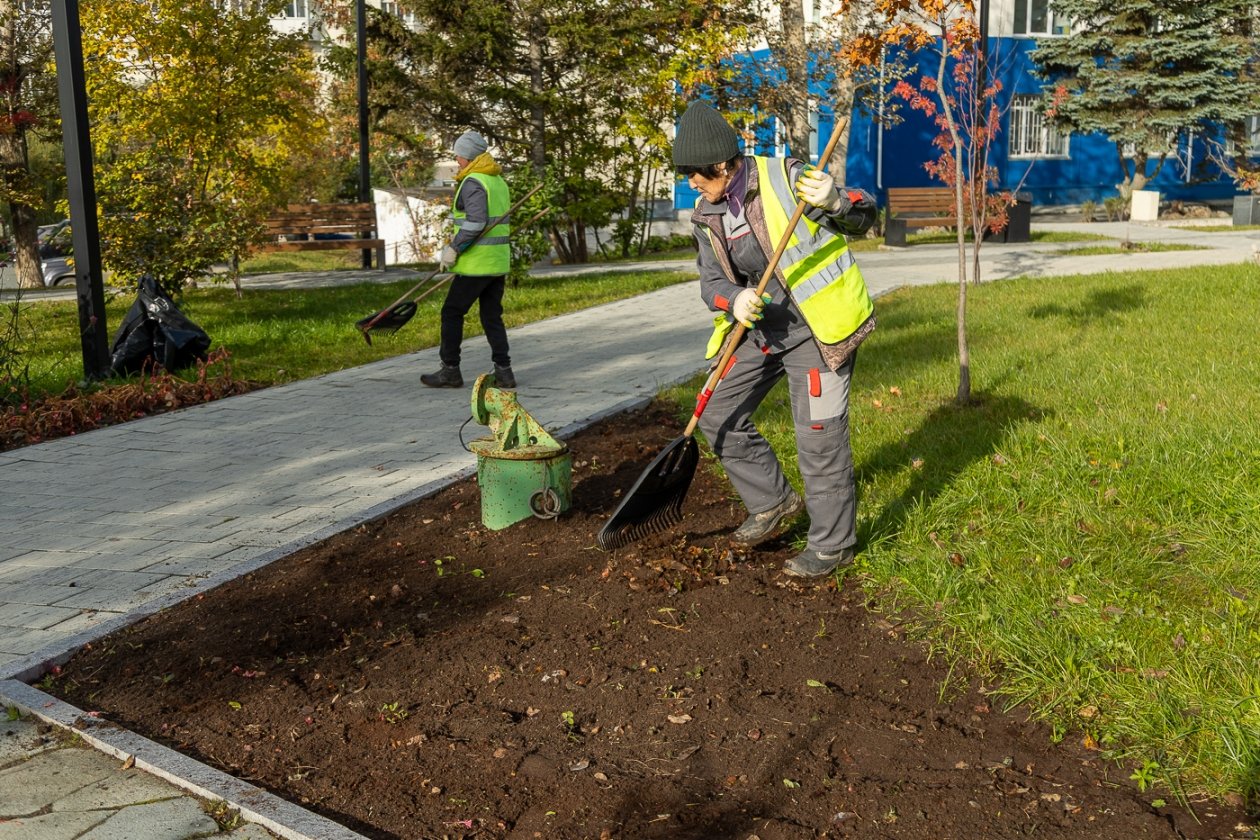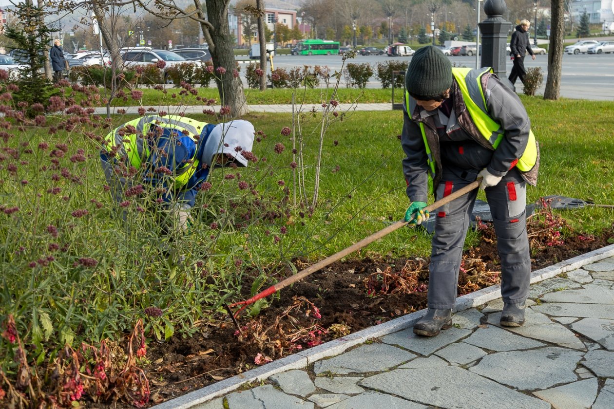 В связи с наступлением низких температур уборка увядших однолетних растений с клумб была начата раньше обычного. Сегодня бригады работают в скверах на улицах Горького. Также уборка цветников продолжается в Дальнем, Березняках и других планировочных районах и селах муниципалитета.