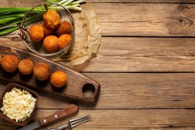 Каждый шарик расплющиваем в ладони, в центр выкладываем чайную ложку охлаждённой начинки.