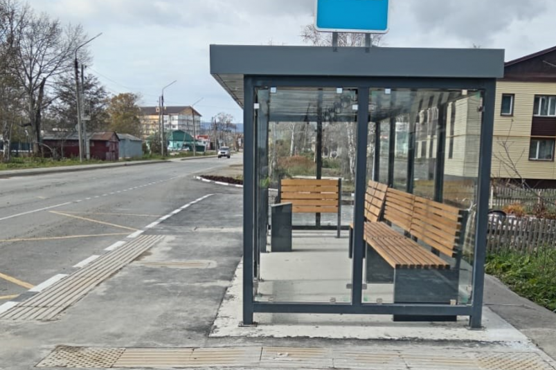 Две автобусные остановки укомплектовали на сахалинской трассе "Долинск — Быков"