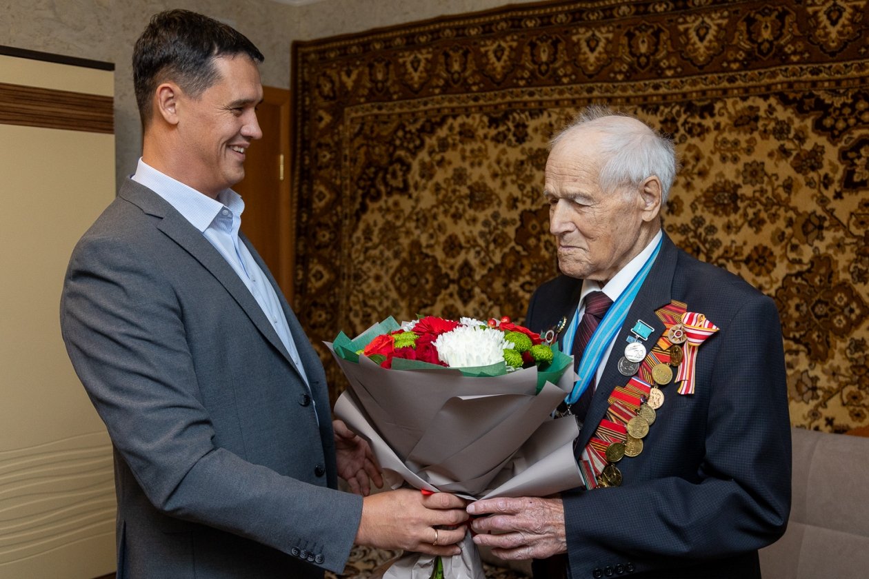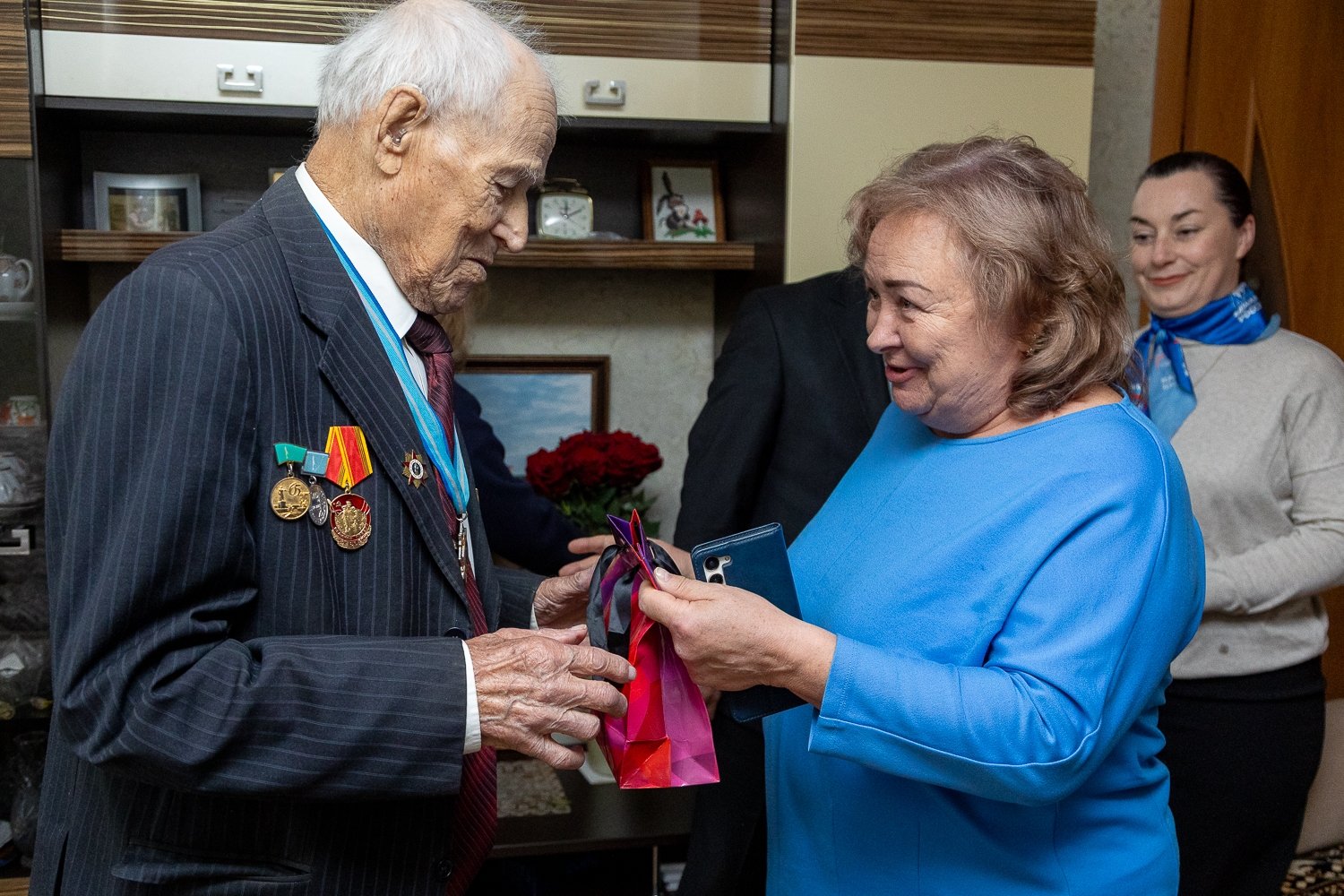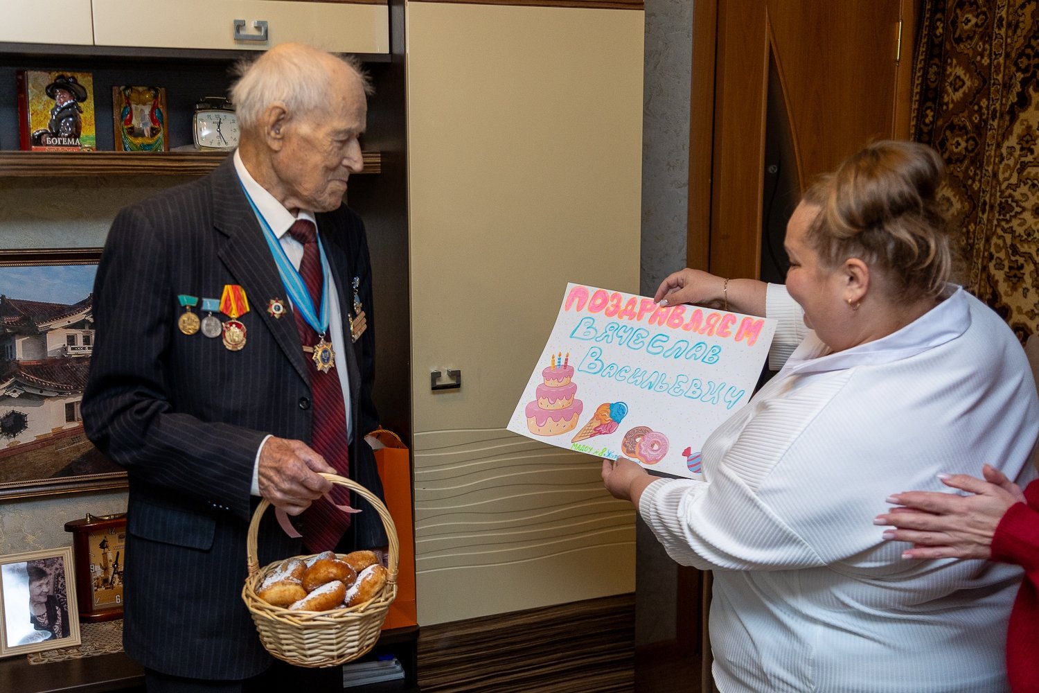 SakhalinMedia, 30 октября. Ветерану Великой Отечественной войны Вячеславу Гаврилову из Южно-Сахалинска исполнилось 99 лет. Поздравить героя пришли представители администрации Южно-Сахалинска, общественных, гражданских и военных организаций, юнармейцы, педагоги, волонтёры и жители города — все, кто бережно хранит память о подвиге поколения защитников Отечества, сообщили в пресс-службе мэрии города.