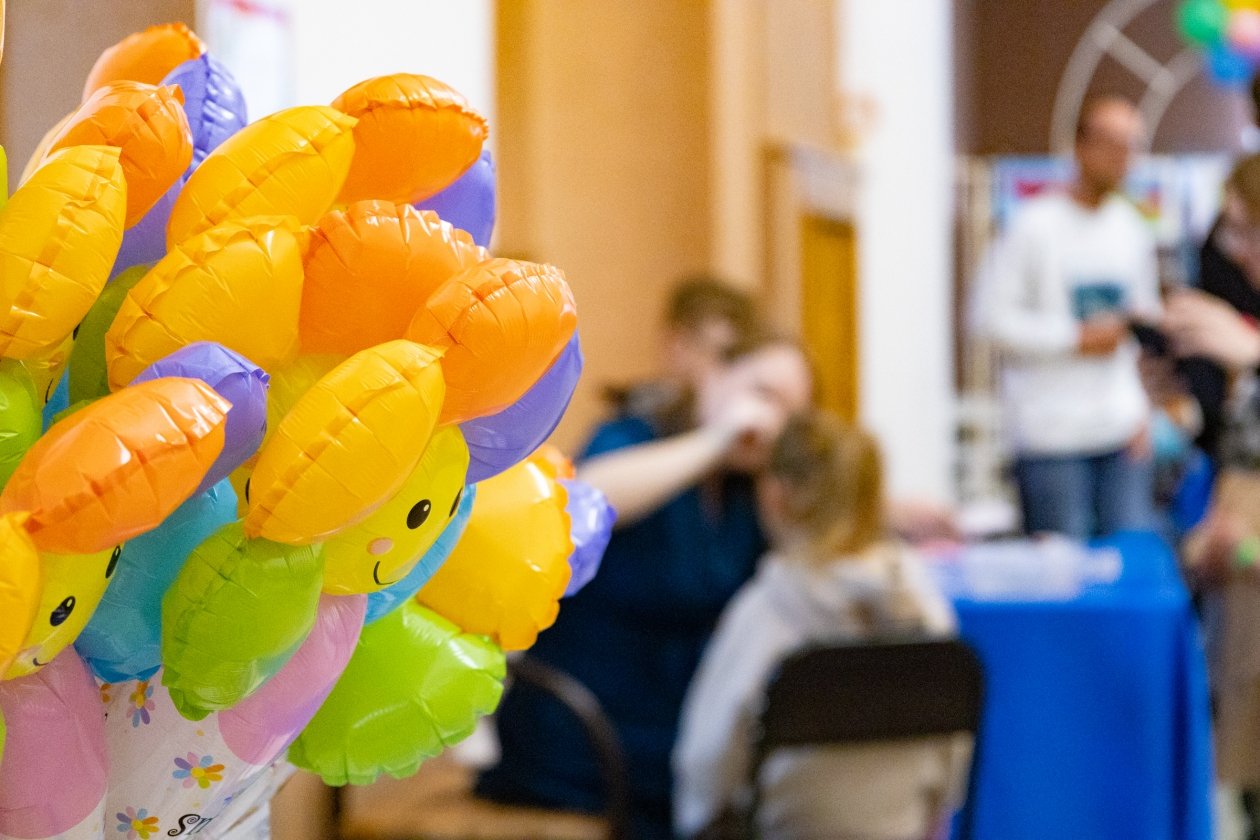 Пространство фойе ГДК стало большой творческой мастерской. Гости знакомились с выставкой детских работ "Я так вижу" (0+), где каждый рисунок и поделка отражали уникальное восприятие мира. На мастер-классах (0+) дети и взрослые вместе учились создавать свечи из вощины, осваивали декоративную мозаику и технику аквагрима.