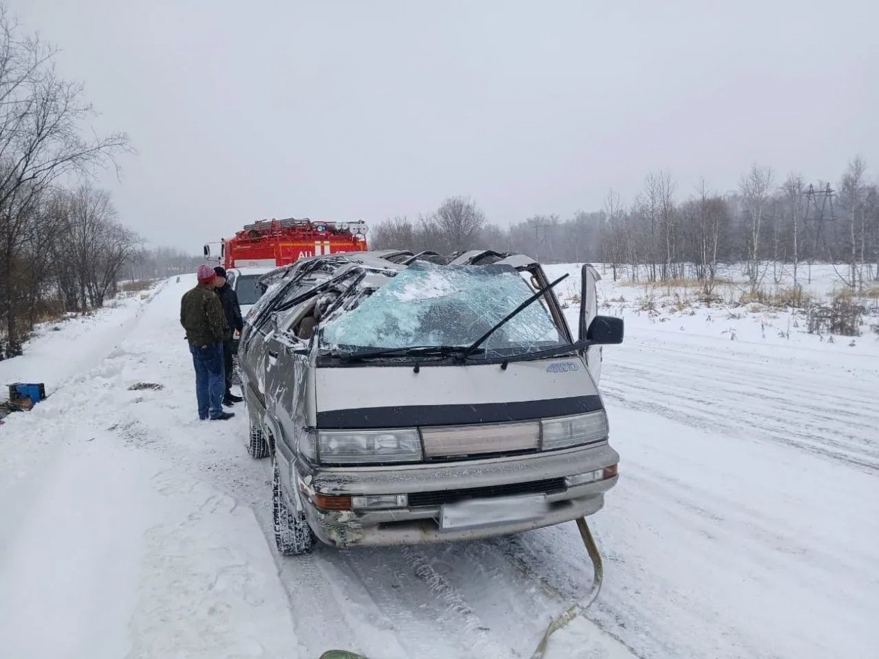 SakhalinMedia, 11 ноября. Сегодня в районе села Адо-Тымово в Тымовском районе по неустановленной причине перевернулся микроавтобус Toyota Town Ace. В салоне находился водитель, он пострадал и оказался зажат в автомобиле, сообщили в пресс-службе Агентства ГО, ЧС и ПБ.