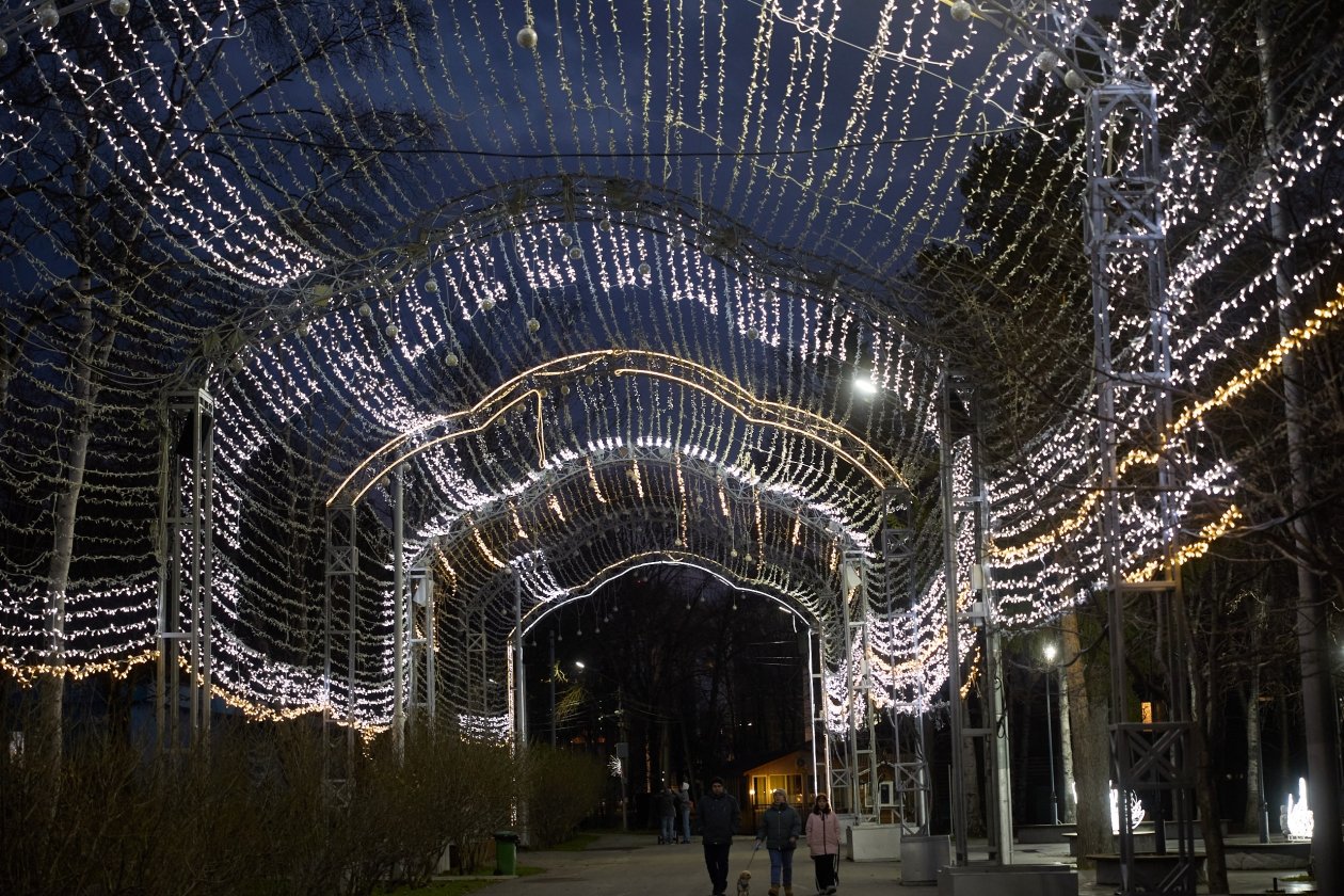 Сейчас на территории парка устанавливаются новые арт-объекты и тематическая праздничная иллюминация, рассказал директор Илья Прудников. Обновлены световые элементы, светодиодные гирлянды, проведена техническая отладка всех светящихся фигур. На опорах смонтирована большая часть новогодних консолей.