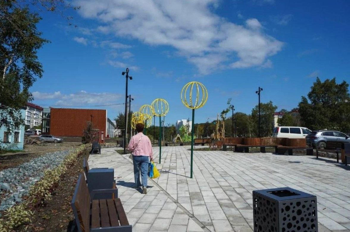 В Невельске и Долинске новый облик получили площади Ленина, в Томари и Ногликах — привокзальные площади. В Ногликах продолжили благоустраивать парк "Застава". Ранее там благоустроили новые пешеходные дорожки из брусчатки, построили песочницу с мини-экскаваторами для детей, установили дополнительное освещение и видеокамеры, расставили новые скамьи и урны. Недавно появилась еще одна новая зона воркаута под открытым небом.