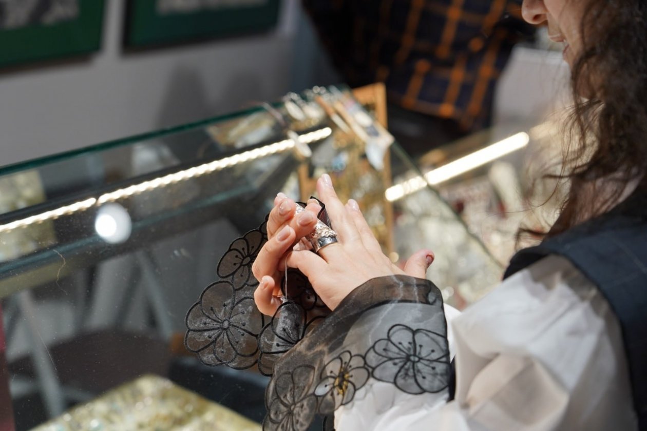 Перед началом основого мероприятия гостей ждала выставка-ярмарка якутских мастеров. Пятнадцать брендов представили изделия, в которых традиционные мотивы переплетены с современным дизайном. Здесь же можно было познакомиться с работами народных художников, приобрести авторскую одежду, аксессуары и ювелирные украшения.