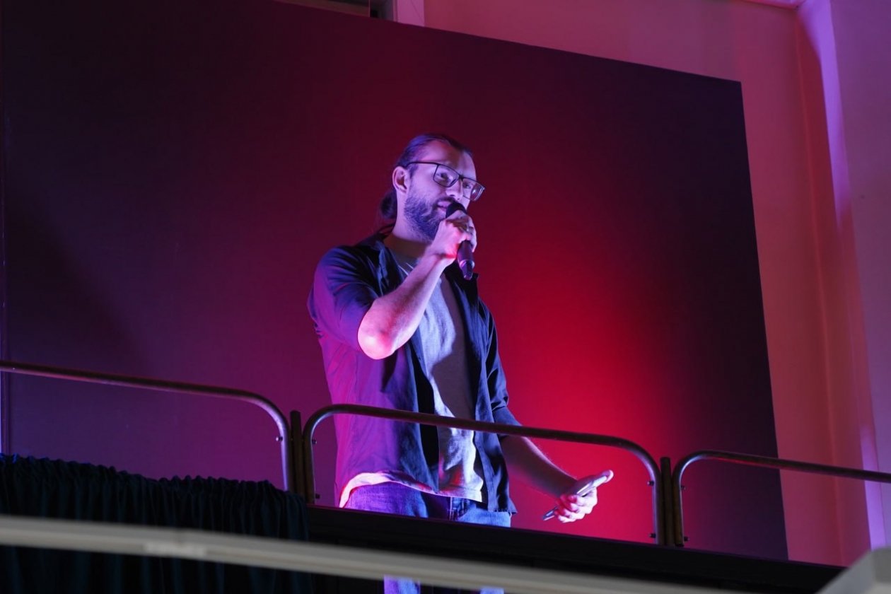 Центральным событием вечера стала поэтическая дуэль Лидии Кисенковой и Александра Соломатова. Лидия прочитала свои стихи и исполнила их под гитару, а артистка Чехов-центра Елена Денисова представила произведения поэтессы в музыкальном формате. Александр Соломатов тоже продекламировал свою поэзию и по итогам зрительского голосования одержал победу.