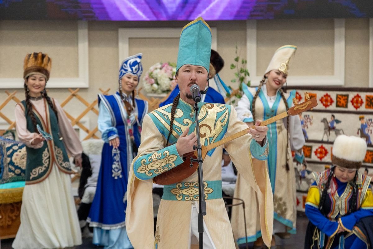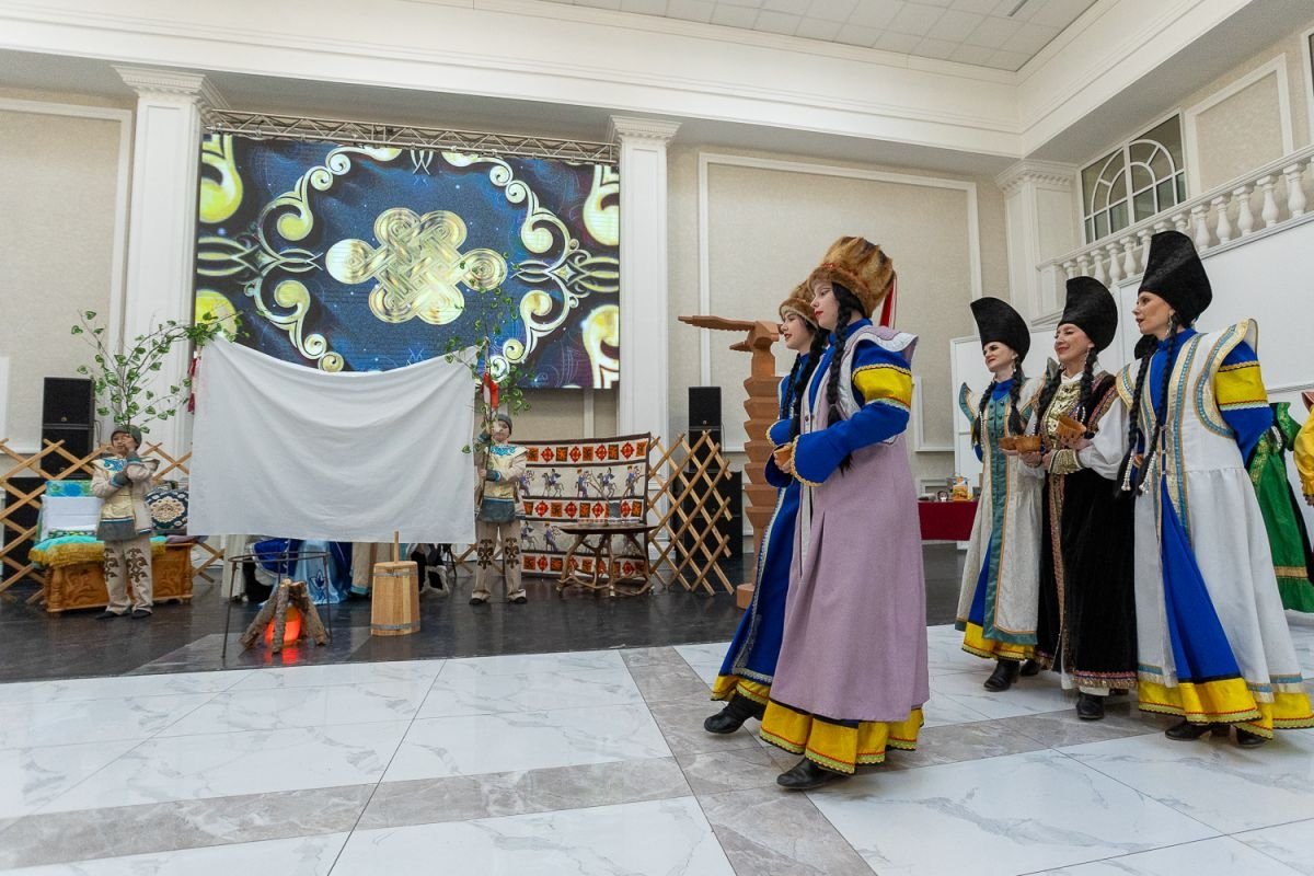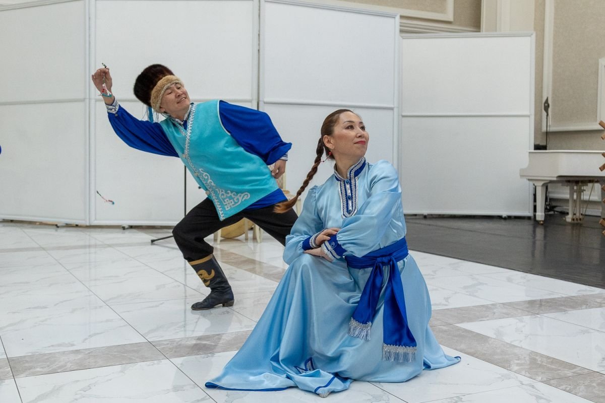 Путешествие в мир обрядов и традиций алтайского народа сопровождало исполнение народных песен в исполнении приглашенного артиста из Республики Алтай Тимура Кайдыкова, который продемонстрировал искусство горлового пения, и выступление театра современного танца "Угол зрения" из Поронайска.