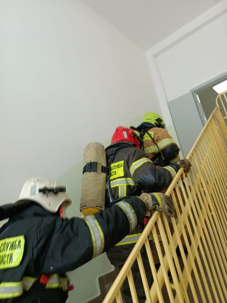 При проведении "спасательной операции" были эвакуированы 118 человек — дети и работники. Во время обследования помещений здания были обнаружены два пострадавших школьника. В средствах индивидуальной защиты органов дыхания и зрения их вывели на свежий воздух и передали работникам медицинской службы. Кроме этого, трое сотрудников школы с помощью трехколенной лестницы эвакуировали через окно второго этажа.