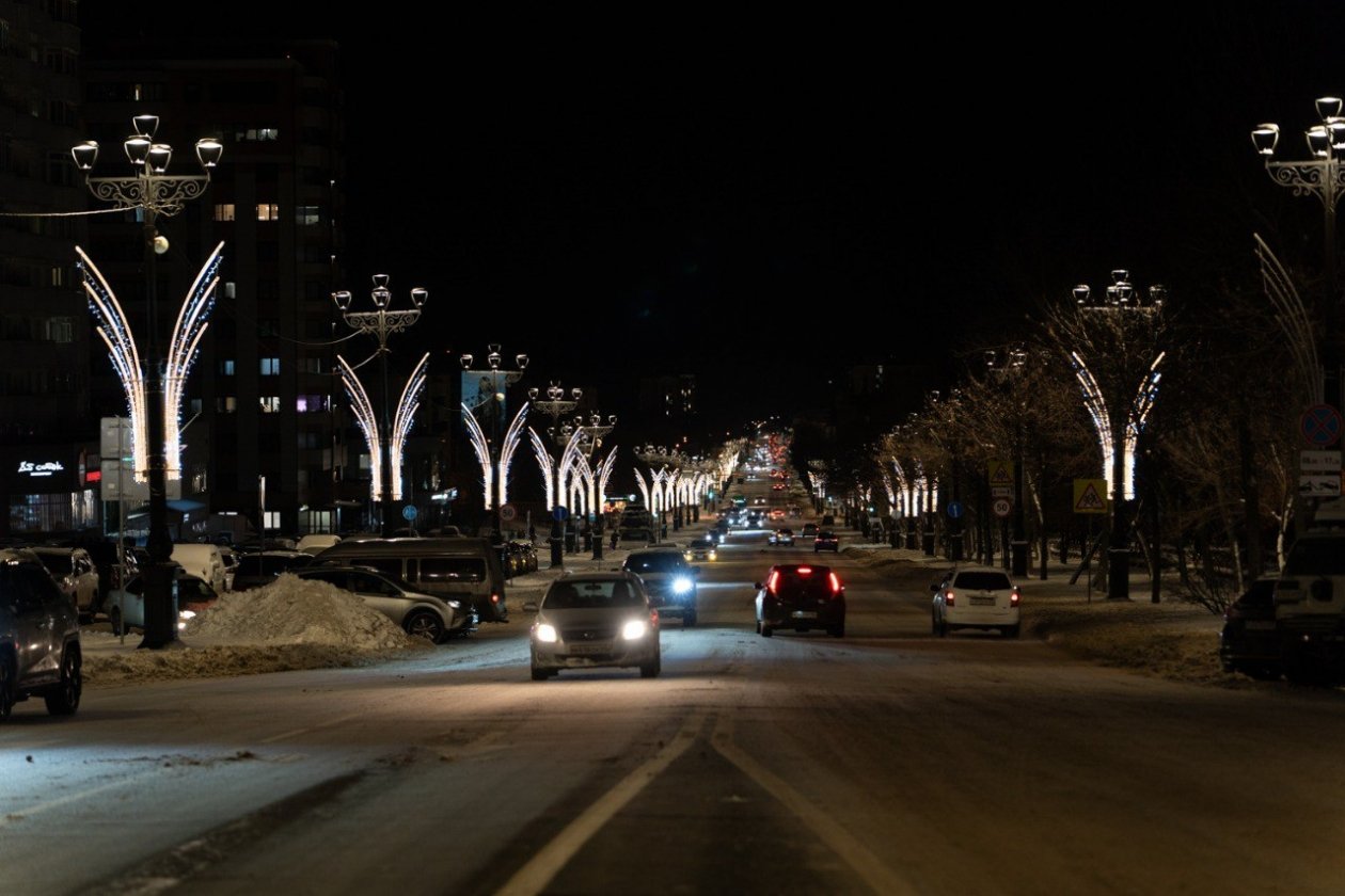 В настоящий момент оформление улиц завершено на 50%. На улицах Ленина и Горького, проспектах Победы, Мира и Коммунистическом загорятся новогодние консоли.