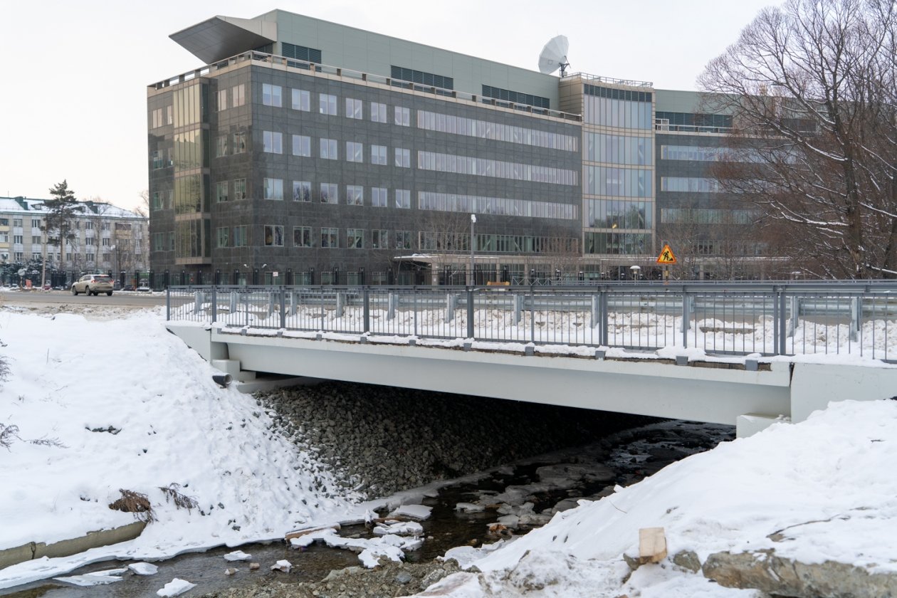 Как рассказал представитель подрядчика Кирилл Рогозин, в данный момент продолжаются работы по устройству тротуара от моста через реку Рогатка до улицы Сахалинской, также заканчиваются работы по демонтажу временного моста.