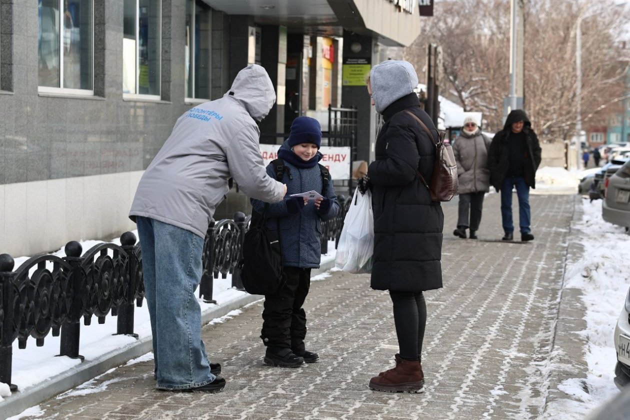 В этот же день на площадках возле ТЦ "Плаза" и литературно-художественного музея книги А.П. Чехова "Остров Сахалин" волонтеры Победы раздавали прохожим информационные листовки о героях Сахалинской области.