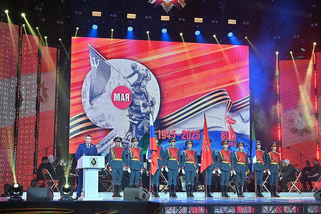 — Хабаровск — город воинской славы. Это высокое звание возлагает на нас особую ответственность — быть достойными подвигов наших предков. В годы войны в рядах действующей армии сражались десятки тысяч хабаровчан, сорока трем из них присвоено звание Героя Советского Союза, трое стали полными кавалерами орденов Славы. С самого начала войны работа промышленных предприятий Хабаровска была переведена на военные рельсы. Наши заводы, выпускавшие продукцию для фронта, внесли важный вклад в Победу. За станки вместо ушедших на фронт мужчин встали женщины и подростки, — сказал Сергей Кравчук, поздравляя горожан с 80-й годовщиной великой Победы.