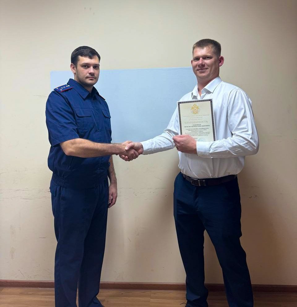 "Старший следователь Корсаковского межрайонного следственного отдела СУ СК России по Сахалинской области Кирилл Дешко вручил благодарности двум жителям Курильского района — Андрею Минько и Эдуарду Меркелю — за проявленное мужество и самоотверженность, благодаря которым удалось спасти человеческую жизнь в сложной ситуации", — говорится в сообщении.