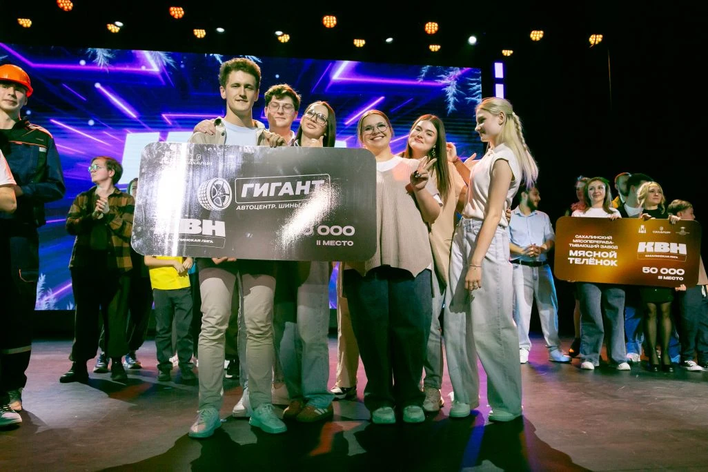 На втором месте с отставанием всего в один балл оказалась "Сборная СахГУ". Они выиграли сертификат на 100 тыс. рублей от партнера Сахалинской лиги КВН. Почетную тройку замкнули представители Холмска — команда "Игорь Николаев" получила сертификат на 50 тыс. рублей.