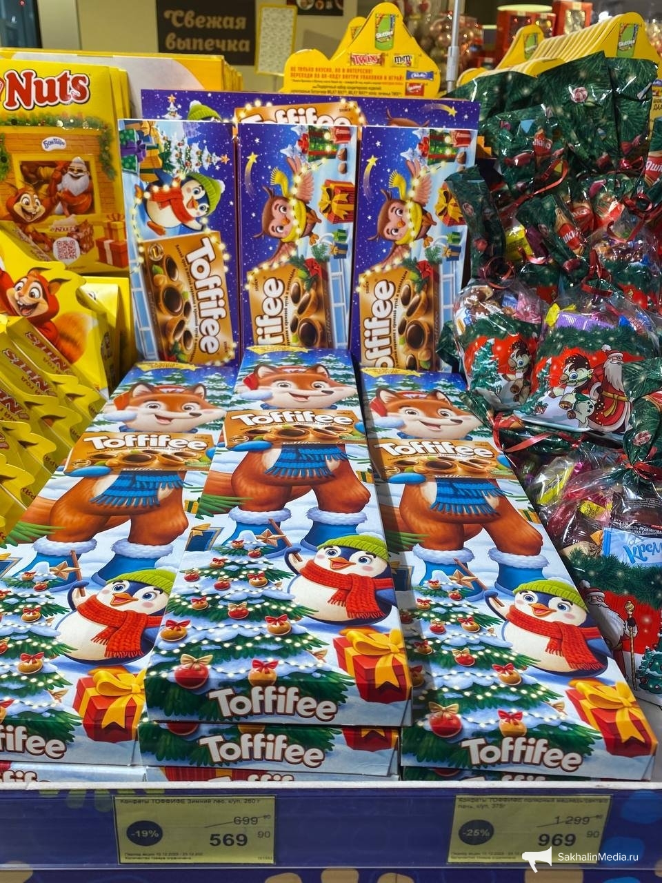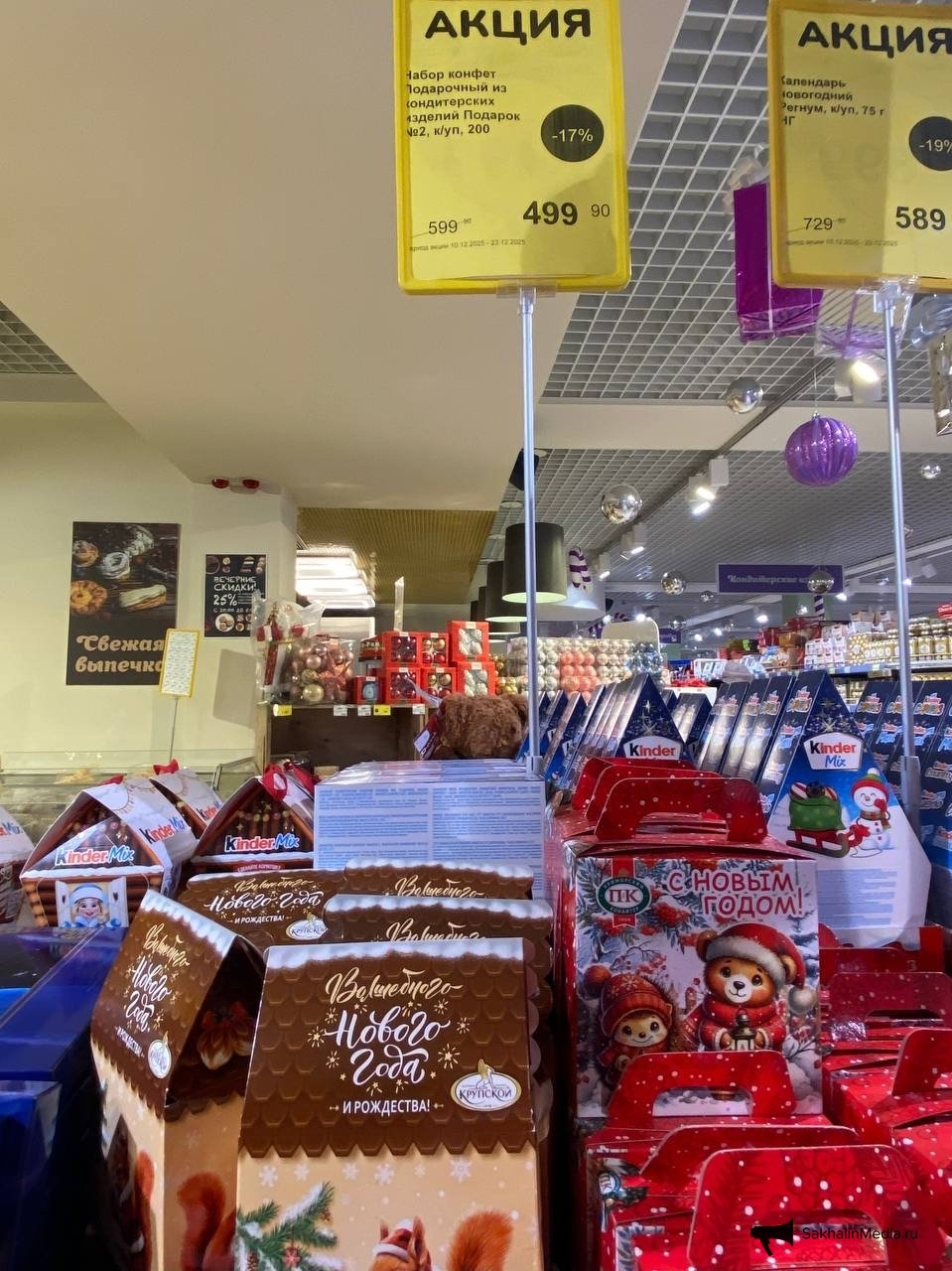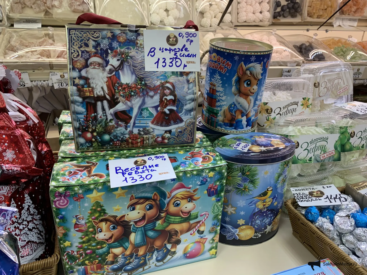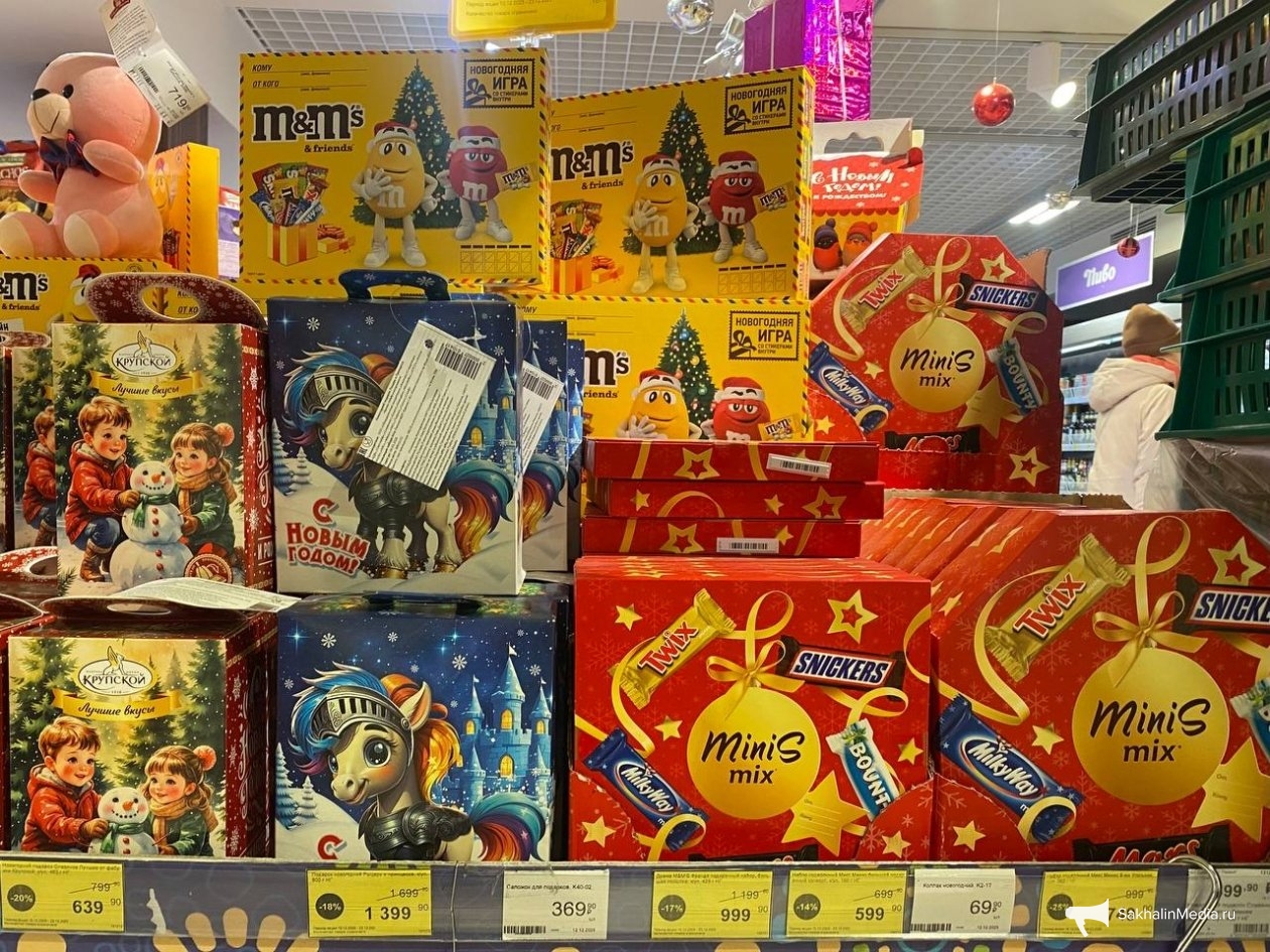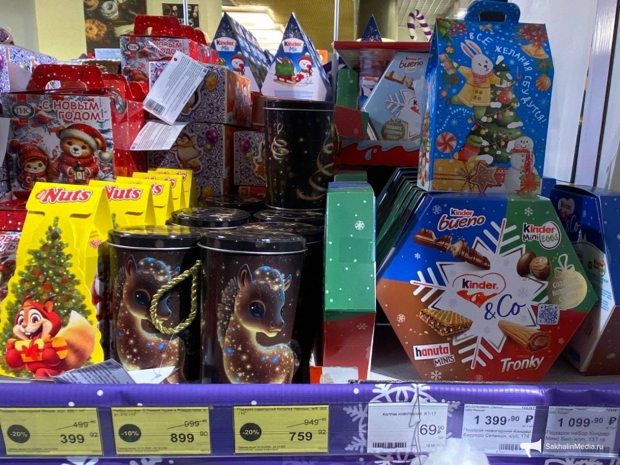 SakhalinMedia, 23 декабря. В преддверии Нового года одной из самых актуальных задач становится покупка подарков. Многие в данном случае предпочитают не ломать себе голову и выбирают сладкие наборы, поскольку они универсальны и могут порадовать как детей, так и взрослых. Плюсы таких подарков заключаются также в доступности — праздничные наборы можно найти в каждом супермаркете, большинстве магазинов и маленьких торговых точек. Как обстоят дела с ценами на сладкие подарки в магазинах Южно-Сахалинска и насколько они разнообразны, выяснял корр. ИА SakhalinMedia.