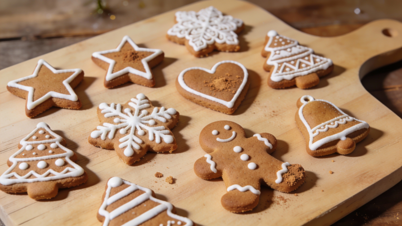 Имбирные пряники имеют жгучий, слегка острый вкус с мягкой сладостью и ароматом пряностей. Это печенье готовят на основе мёда или патоки, что делает его мягким и долго не черствеющим. Сочетание имбиря, корицы, гвоздики и кардамона создаёт сложный вкусовой профиль, характерный для праздничной европейской кухни. Традиция готовить имбирные пряники на Рождество и Новый год восходит к Средневековью, когда пряности привезли в Европу с Востока.