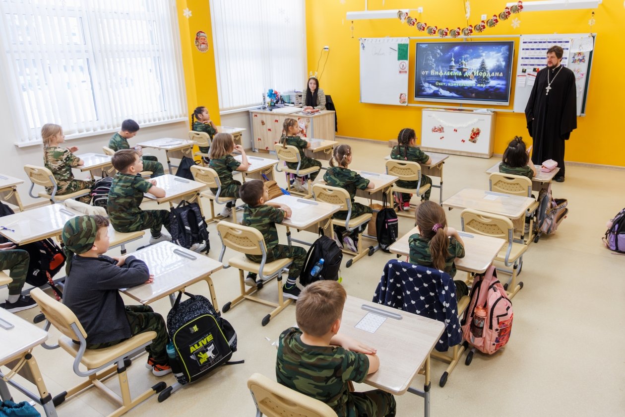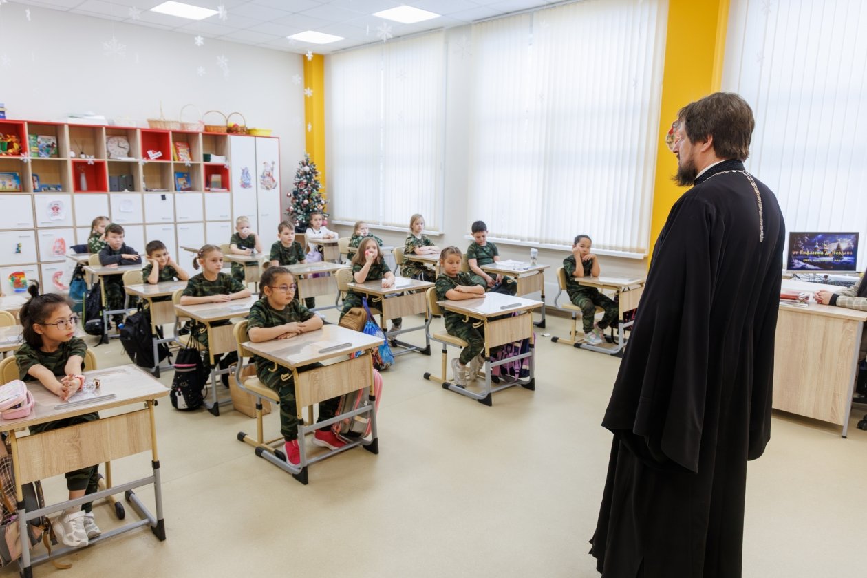 Школа №24 открылась в этом году, и одним из направлений учебного заведения стал класс с углубленным изучением казачьей культуры и традиций. Именно с его учащимися по приглашению администрации школы встретился священнослужитель.