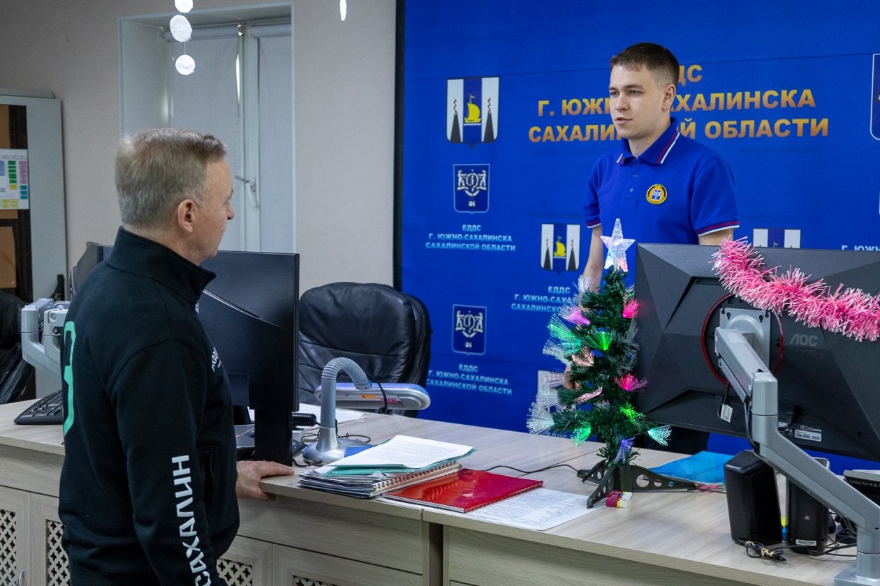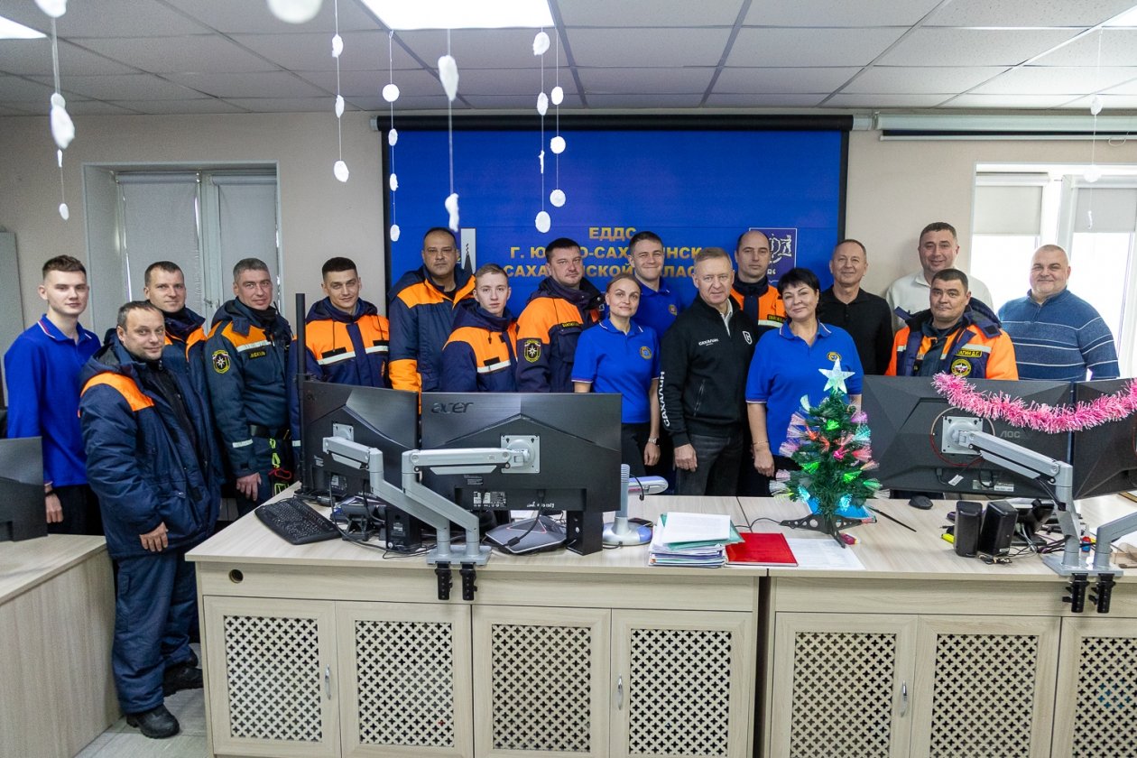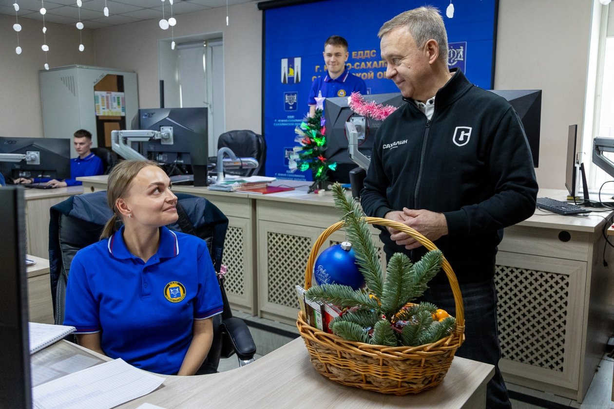 SakhalinMedia, 31 декабря 2025. В преддверии наступающего Нового года глава Южно‑Сахалинска Сергей Надсадин посетил ЕДДС городского управления ГО и ЧС, чтобы лично поздравить специалистов с праздниками и выразить благодарность за их круглосуточную работу. Он пообщался со сменой, которой предстоит дежурить в новогоднюю ночь, и пожелал спокойной службы, сообщили в пресс-службы мэрии областного центра.