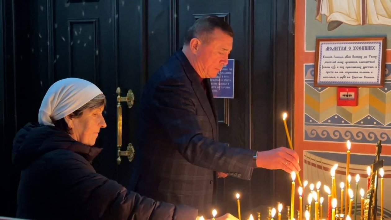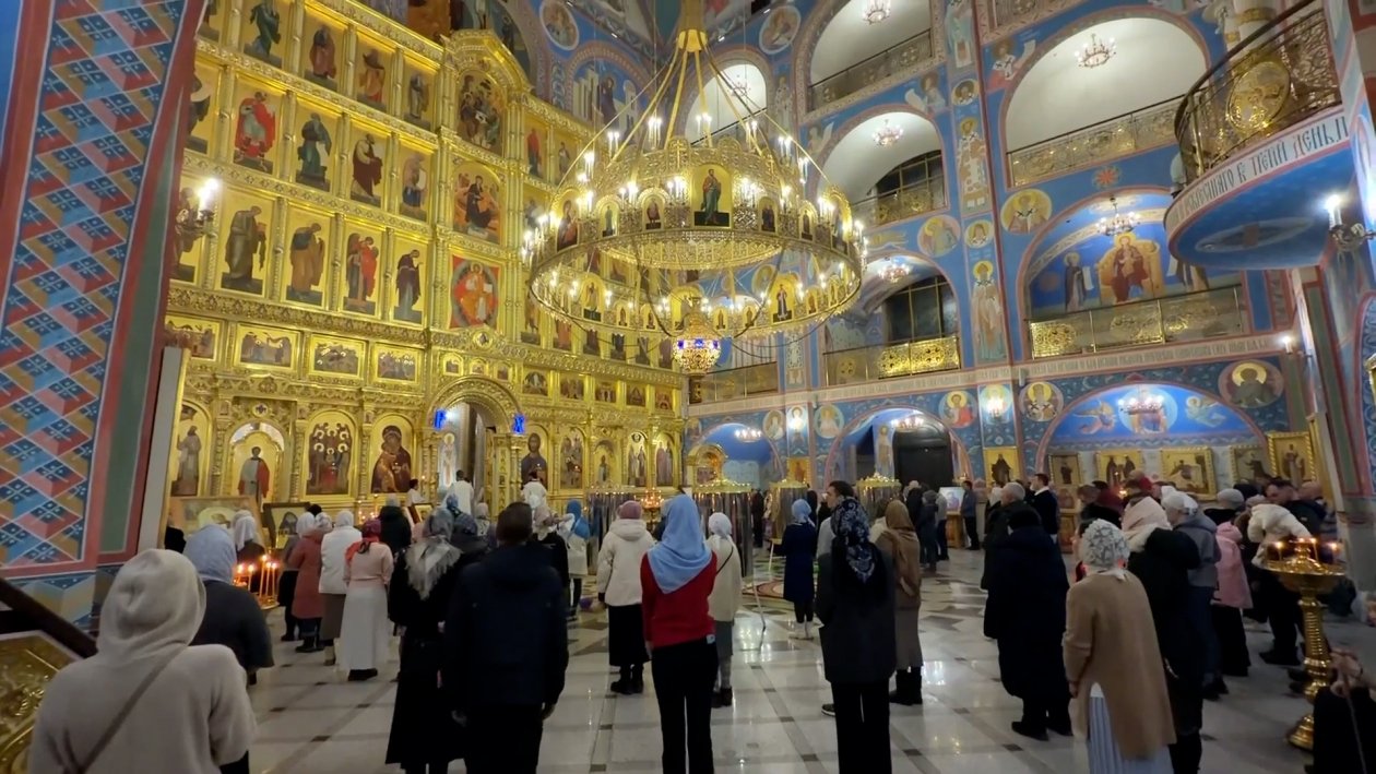 К верующим присоединился губернатор Валерий Лимаренко — он принял участие в богослужении, которое прошло в Кафедральном соборе Рождества Христова.