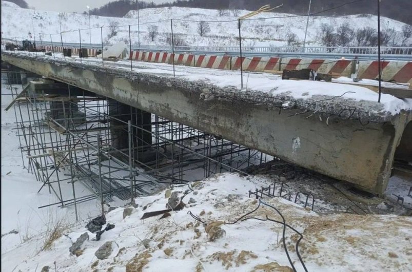 На искусственном сооружении через реку Христофоровку подрядная организация "Востокдорстрой" уже завершила демонтаж существующего моста, выполнила устройство двух прямоугольных железобетонных труб и насыпь земляного полотна. В настоящее время проезд на этом участке осуществляется по временным трубам. С наступлением устойчивых положительных температур подрядчик приступит к устройству дорожной одежды и элементов обустройства.