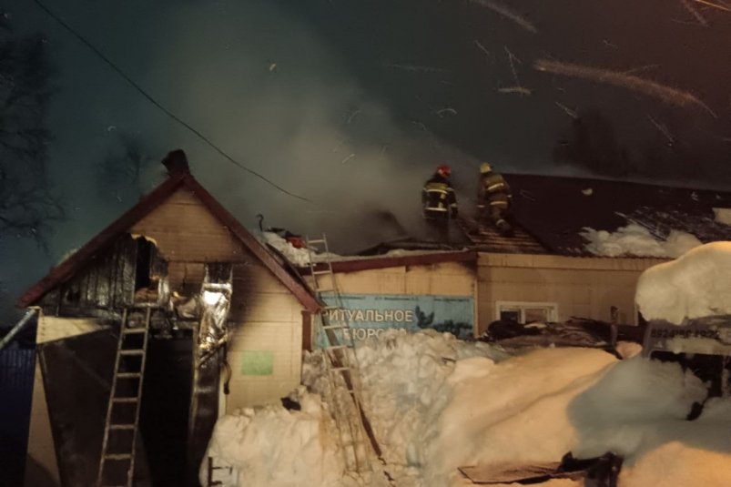 SakhalinMedia, 22 января. Здание ритуального агентства на улице Криворучко, 10 горело рано утром в Тымовском. Сообщение о пожаре поступило на пульт диспетчера 21 января в 4.07. Пожарные прибыли на место происшествия через 6 минут, сообщили в пресс-службе ОКУ "ПСС Сахалинской области".