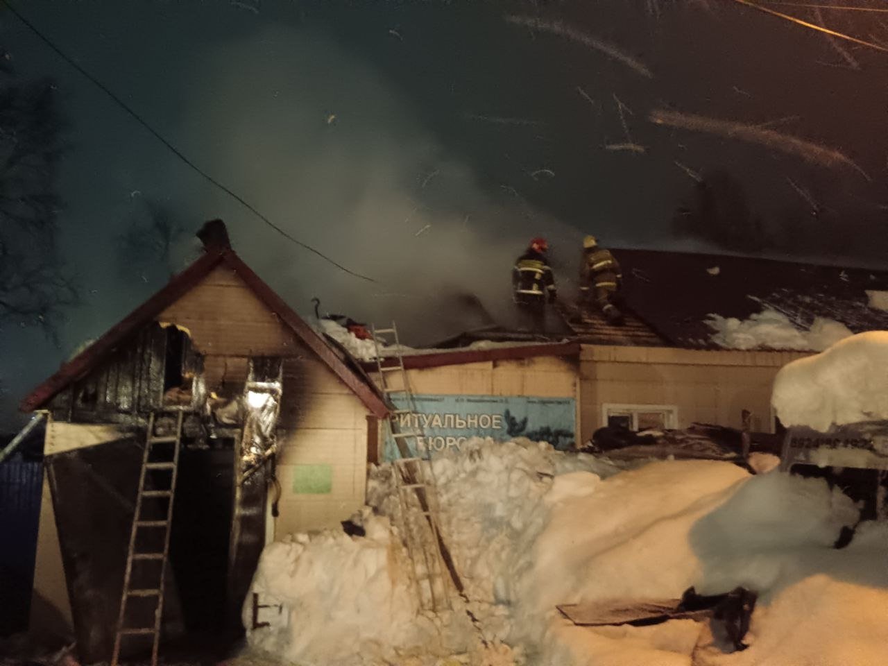 К моменту их прибытия на площади 100 кв. метров горело здание ритуального агентства "Незабудка". Распространение огня на большой площади к моменту приезда огнеборцев было вызвано поздним обнаружением возгорания и сильной пожарной нагрузкой внутри помещений (ритуальный инвентарь).