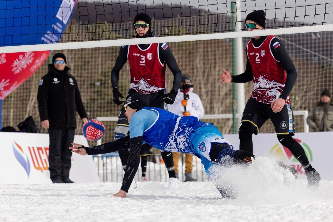 В борьбе за первое место команду "Локомотив" (Калининград) обыграл московский "Спартак" (15:10, 15:12). В прошлом году "Локомотив" на Сахалине занял второе место в снежном волейболе и третье — в пляжном. Теперь они могут порадоваться победе на островном этапе Кубка страны.
