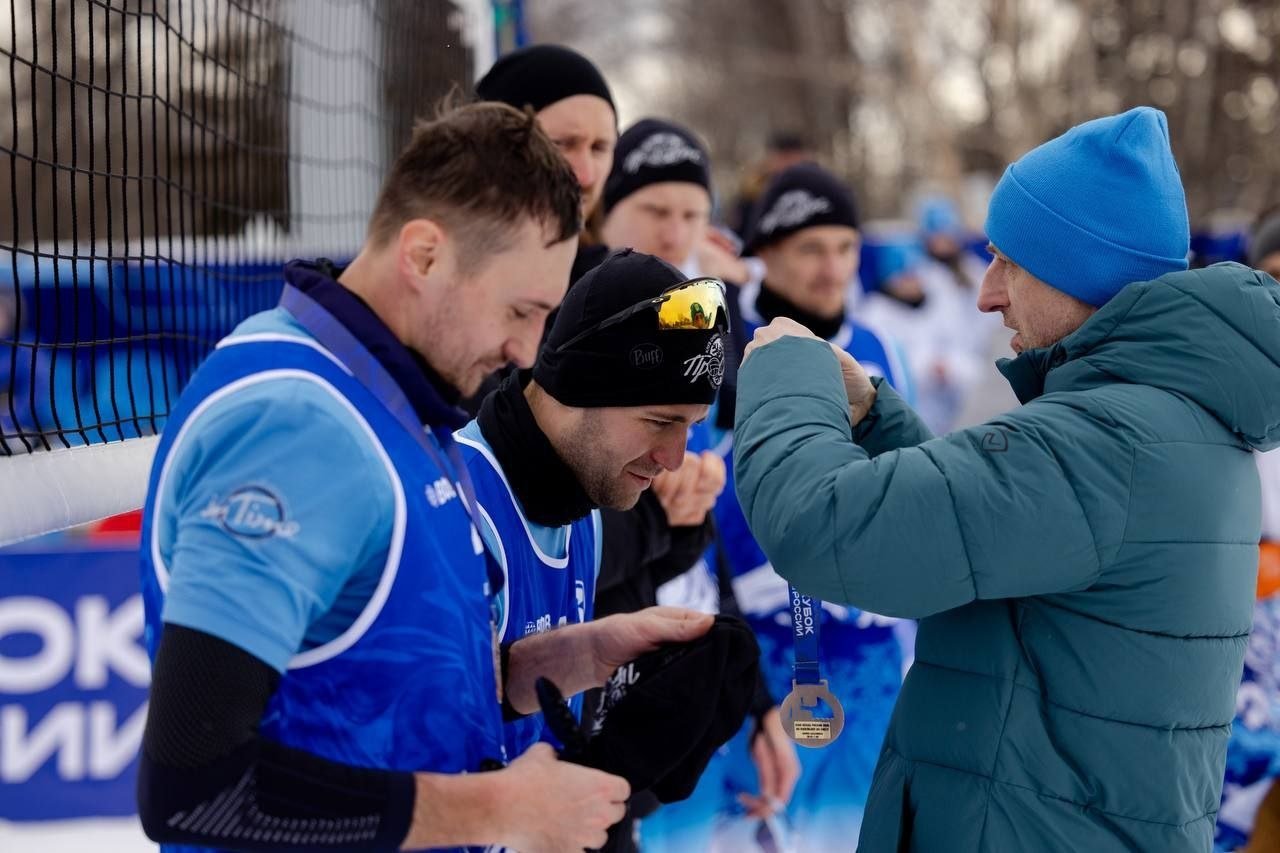 В решающем матче на стадион "Космос" вышли "Факел-Ямал" из Нового Уренгоя и казанское "Динамо-Татарстан". Сильнее оказался "Факел" (15:10, 15:12) — как сообщили в минспорте, команда является одним из лидеров российского волейбола на снегу.