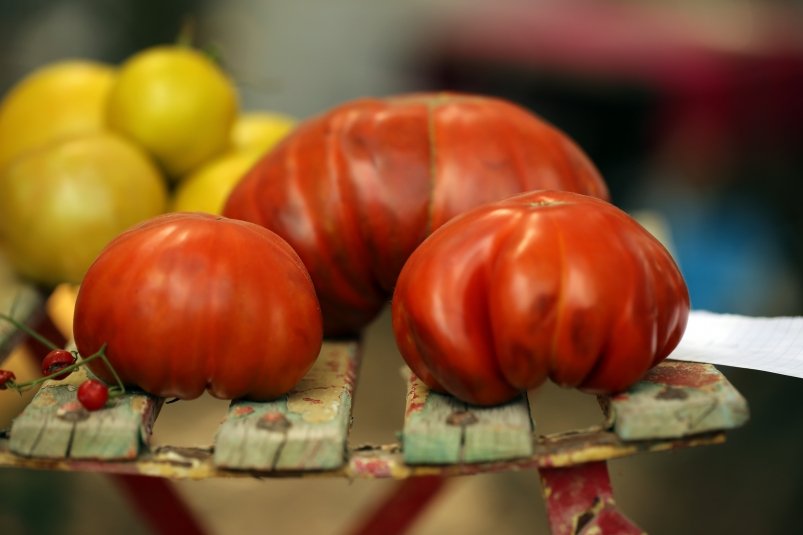 Речь идет о сорте "Цветок Реагир". Да, название красивое, привлекательное. По форме плоды тоже изумительные — сильно ребристые, глубокого темно-красного оттенка, похожи на экзотический цветок. А еще очень крупные — от 450 до 500 г каждый. Но красивый внешний вид оказался единственным преимуществом "Цветка Реагир".