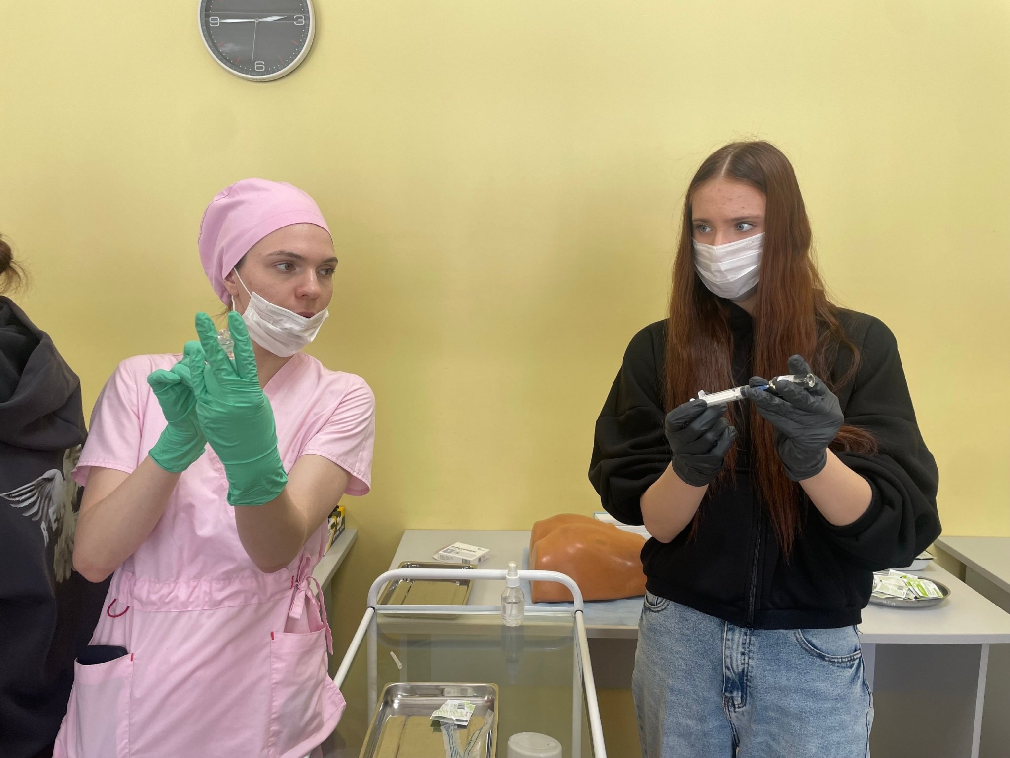 Старшеклассники тренировались делать внутримышечные и внутривенные инъекции, знакомились с хирургическим инструментарием, учились оказывать первую помощь при закупорке верхних дыхательных путей. Им также рассказали об особенностях работы с маленькими пациентами и показали будни фельдшера скорой помощи.