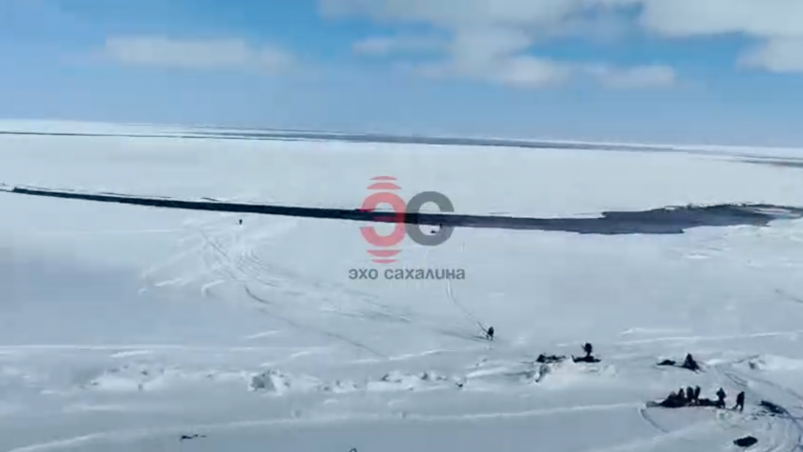 Ещё одна трещина появилась у села Охотское, в районе Ковша. Там на оторванной льдине находятся восемь человек. Они ждут прибытия судна на воздушной подушке "Хивус".