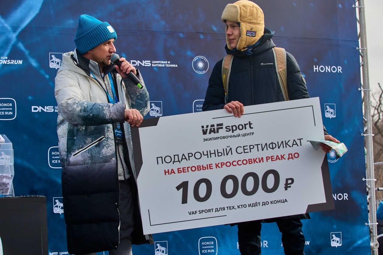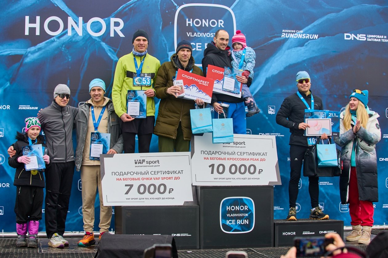 После финального подсчета результатов судьями были определены победители 11-го Международного ледового полумарафона HONOR Vladivostok Ice Run. Под бурные овации им были вручены грамоты и призы. Абсолютные победители получили флагманские смартфоны серии HONOR Magic и другие устройства бренда HONOR. Призовой фонд полумарафона в этом году составил 500 тысяч рублей.