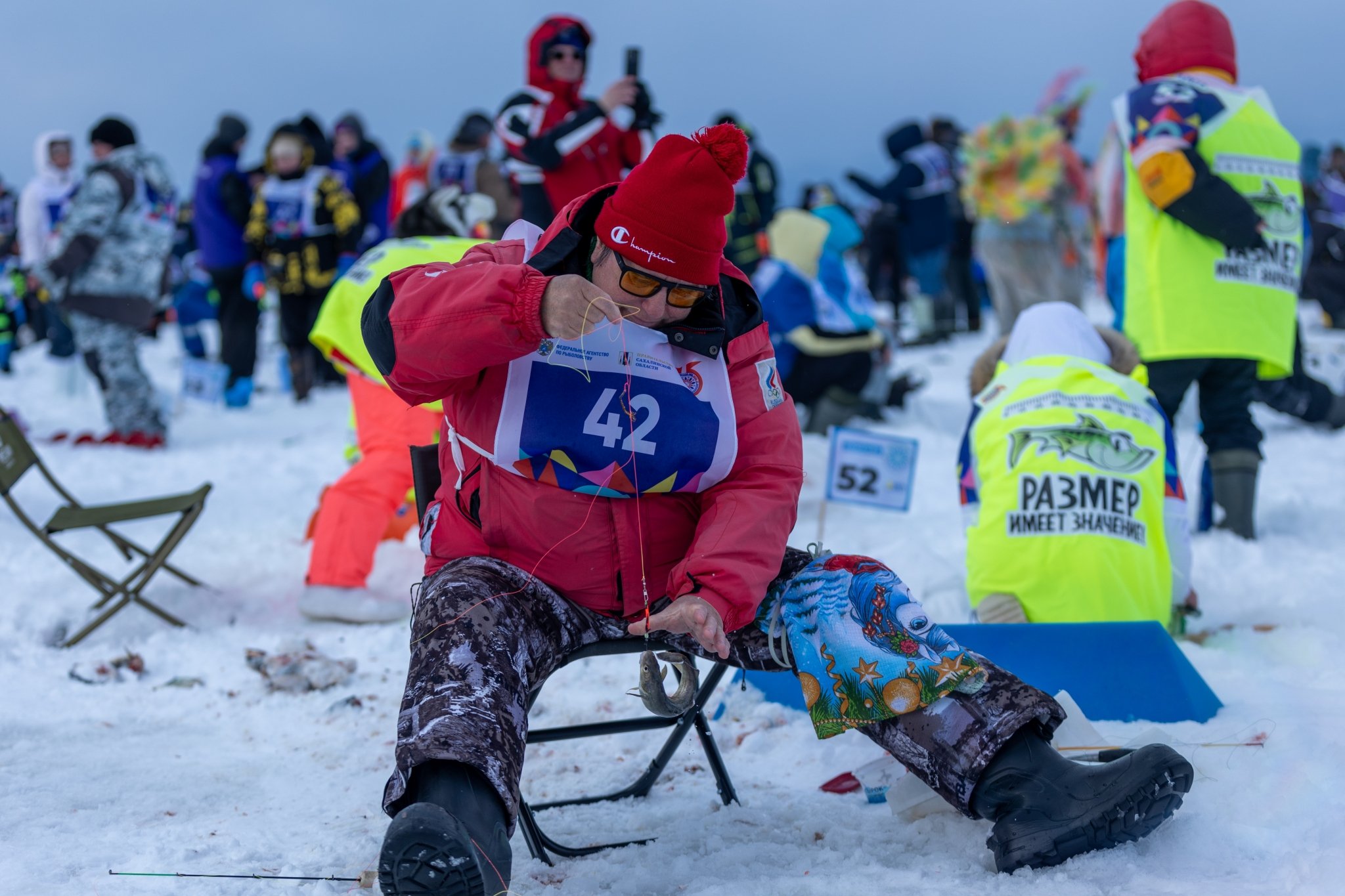SakhalinMedia, 22 февраля. Победитель фестиваля любительской рыбалки "Сахалинский лед — 2026" (6+) выиграл миллион рублей. Соревнования прошли 21 февраля на реке Найба в Долинском районе Сахалинской области. В них приняли участие 281 команда из разных регионов — от Калмыкии и Байкала до Камчатки и Москвы, сообщили в пресс-службе регионального правительства.