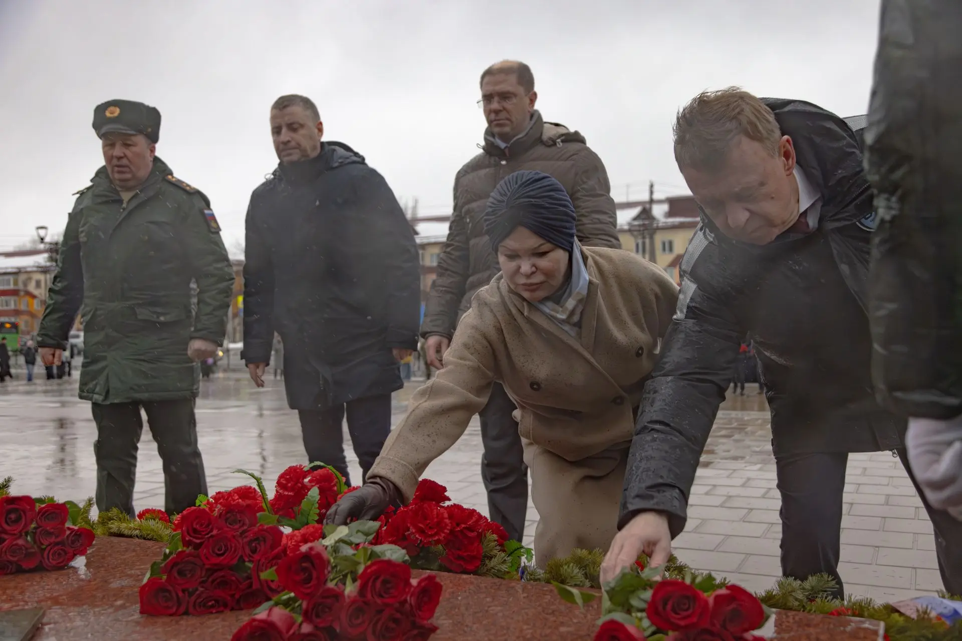 Несмотря на дождливую погоду и сильный ветер, к памятнику воинам, павшим в боях за освобождение Южного Сахалина и Курильских островов, пришли представители федеральных, региональных и муниципальных органов власти, депутаты, командование и военнослужащие 68-го гвардейского армейского корпуса, ветераны, сотрудники силовых структур, участники военно-патриотических объединений и общественных организаций.