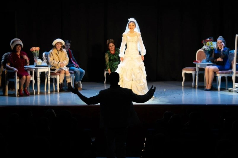 "Комната невесты" — одна из самых популярных постановок в репертуаре Сахалинского международного театрального центра им. А. П. Чехова. Для того чтобы адаптировать спектакль под условия гастролей, в поездку вместе с актерским составом отправился также режиссер и художественный руководитель театра Александр Агеев.