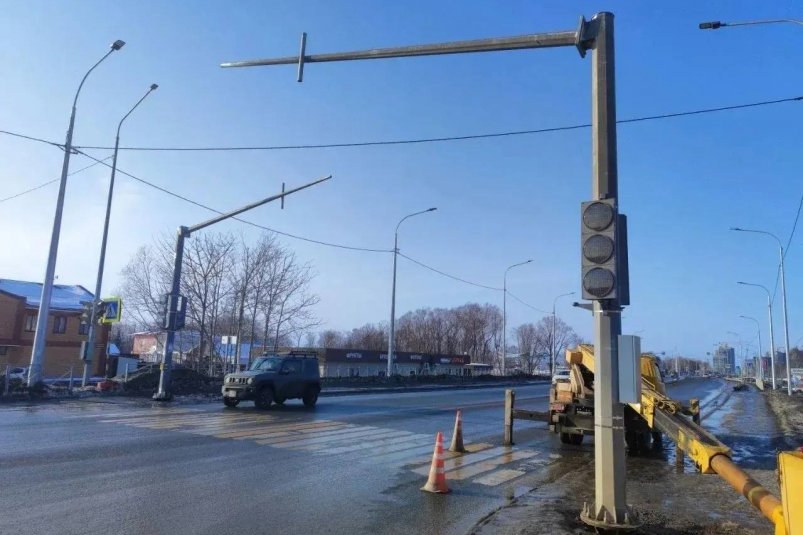 Один светофор уже установлен на пешеходном переходе, расположенном на пересечении проспекта Мира и улицы 3-я Набережная, в районе магазина "Мясной двор". Сейчас специалисты занимаются настройкой оборудования и подведением коммуникаций. Запустить этот светофор планируем до конца февраля.