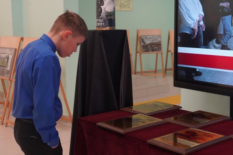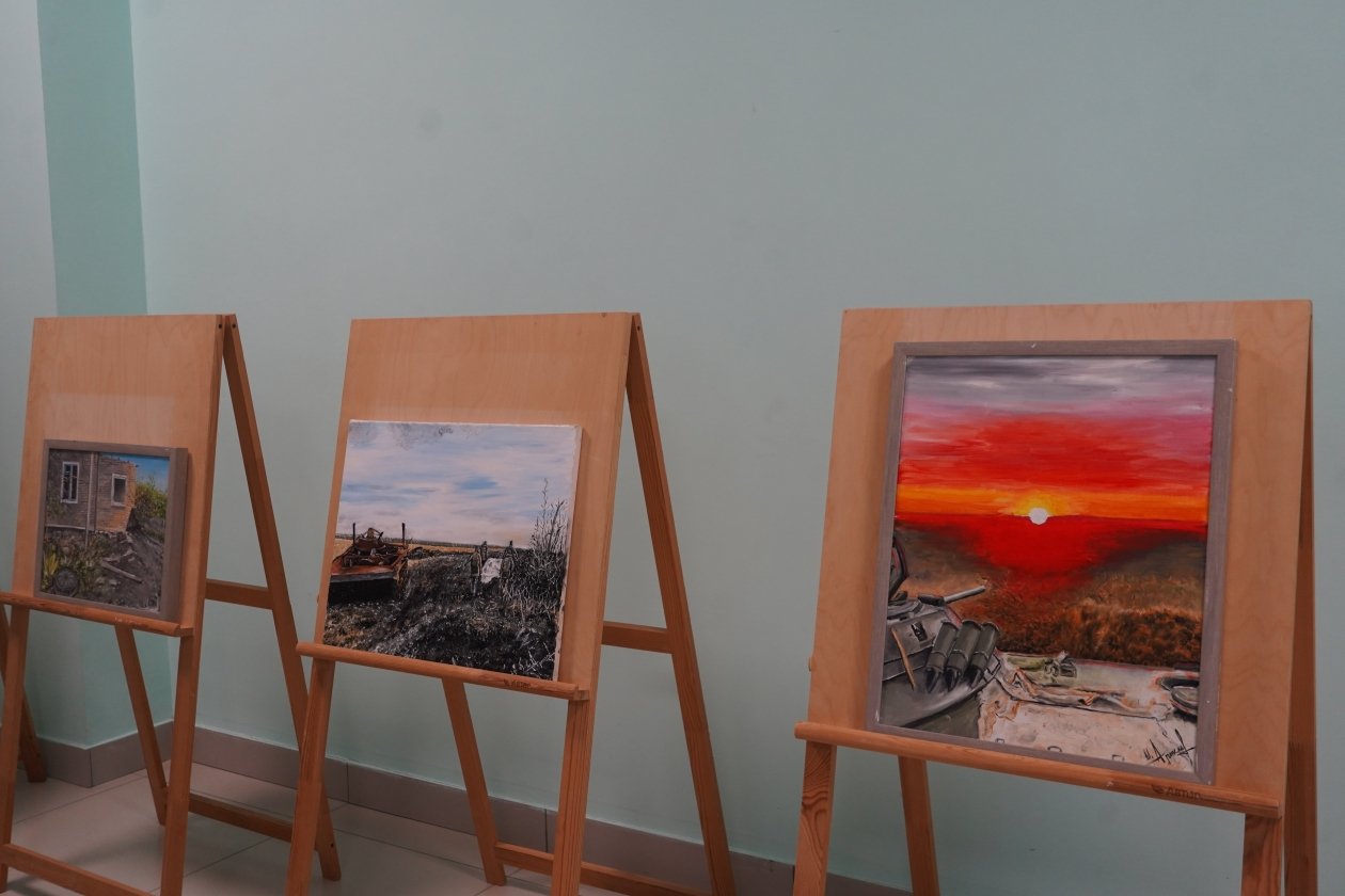 Выставку организовали в фойе сельского Дома культуры. Там представлено более десяти картин Артема Журавлёва, где запечатлены будни участников СВО: военная обстановка, люди, техника и даже животные. Художник создавал эти работы в перерывах между боями, в моменты затишья. Параллельно организована передвижная выставка "Защищаем СВОих" от 39‑й отдельной гвардейской мотострелковой бригады.