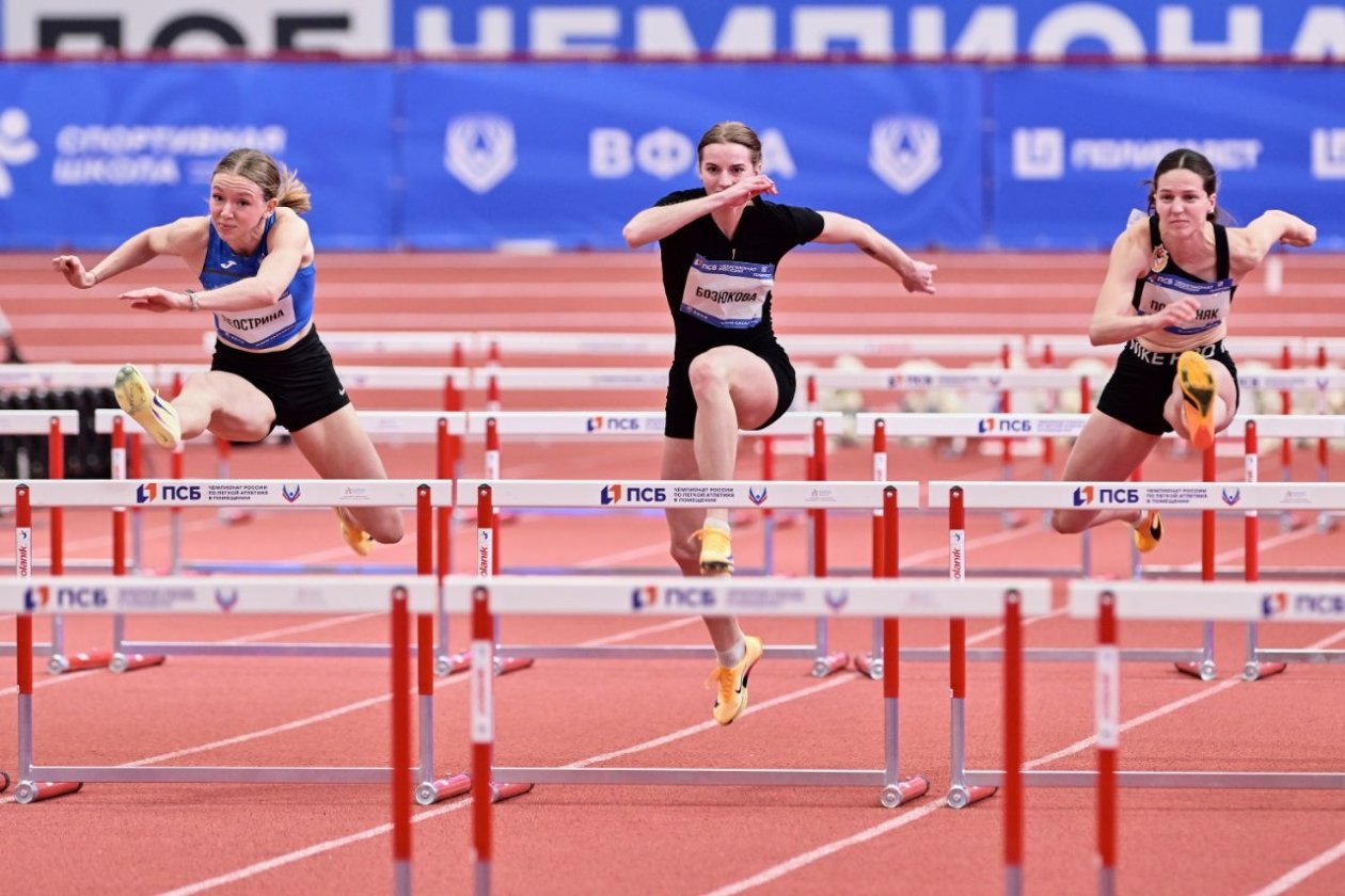 Бег 60м с барьерами у женщин завершился победой петербурженки Валерии Леостриной (8.11). Серебро забрала Вероника Ратиева из Ростовской области (8.14), а бронзовая медаль досталась Виктории Погребняк (Московская область-Алтайский край), ее время — 8.16.