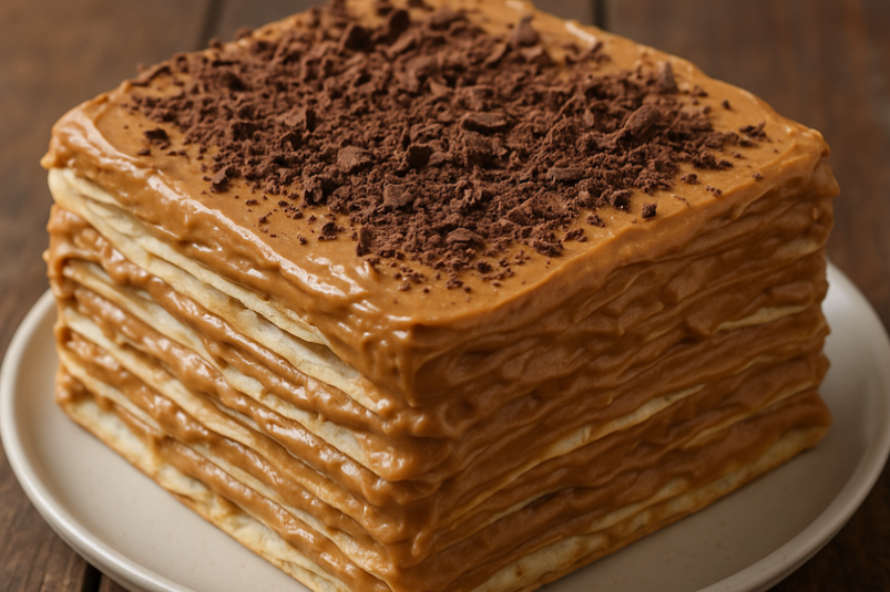 Если хочется внести еще больше разнообразия, можно чередовать лаваш и крем с тертым бананом или черносливом — получится настоящий ресторанный десерт.