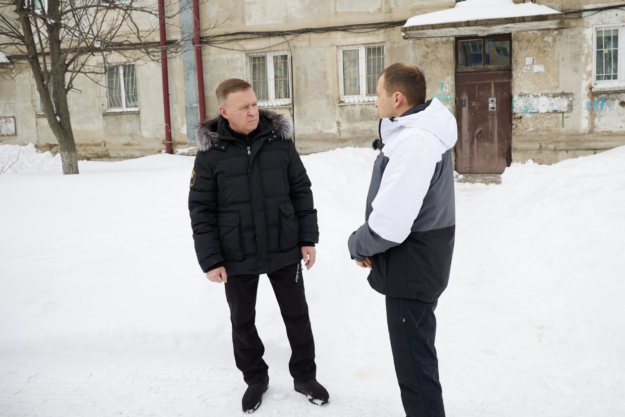 После штаба Сергей Надсадин выехал во дворы, чтобы проверить работу управляющих компаний. На некоторых территориях механизированная расчистка уже началась, но есть дворы, где не выполнены даже первоочередные работы по расчистке входных групп и пешеходных дорожек.