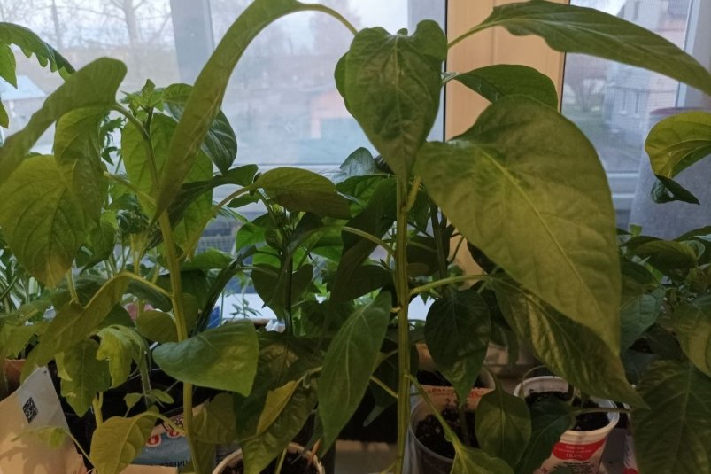 Если перцы посеяны все вместе и взошли густо, то им может не хватать влаги и питания из-за высокой конкуренции — отсюда и желтые листья. Распикируйте рассаду как можно скорее, при этом расставьте горшки с сеянцами на подоконнике так, чтобы каждому из них хватало света и воздуха.