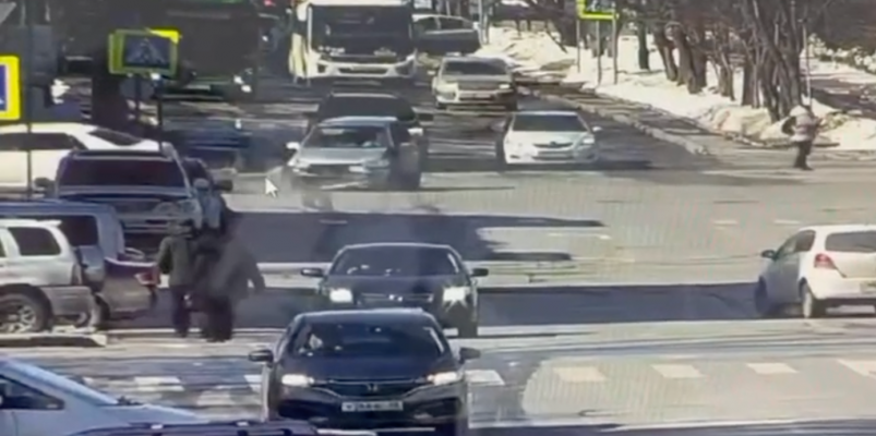 SakhalinMedia, 19 марта. ДТП происшествие произошло в областном центре 18 марта на перекрёстке улиц Карла Маркса и Ленина. Момент аварии зафиксировала камера видеофиксации, кадры опубликовало тг-канал "Дорожный Южный" (18+).