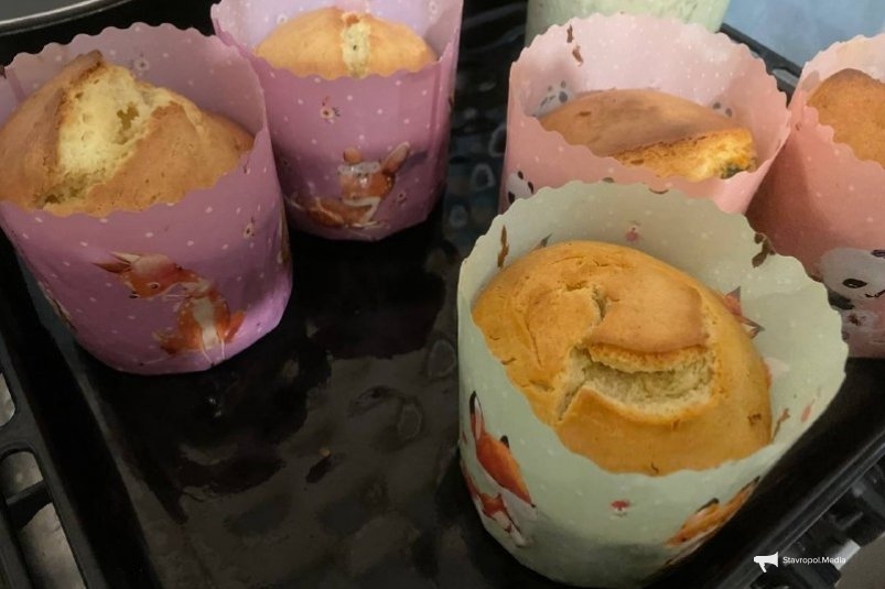 Выложить тесто в формы так, чтобы оно занимало примерно ⅓, но не более ½ высоты формы. Тесто в формах поставить в теплое место, дать подойти (до ¾ объема формы), смазать взбитым яйцом и осторожно, не встряхивая, поставить в не слишком горячий духовой шкаф (примерно на 50–60 минут).
