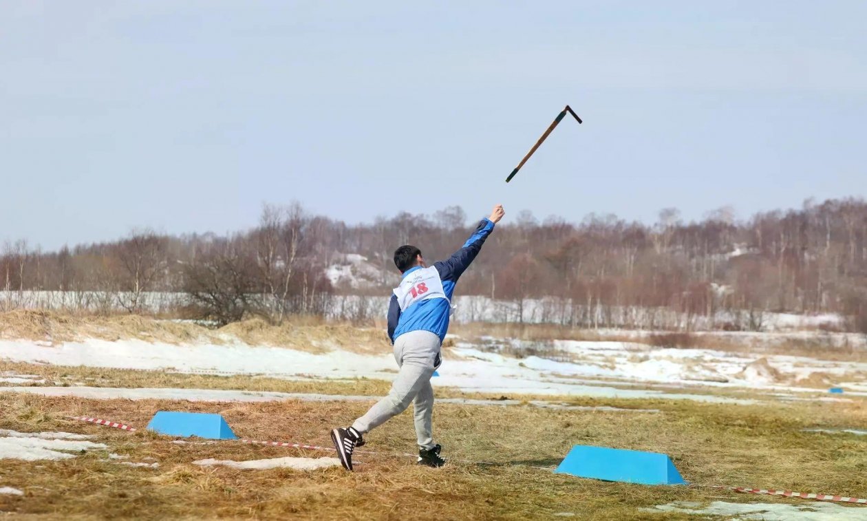SakhalinMedia, 3 апреля. В селе Троицком прошел третий день первенства России по северному многоборью (6+) среди юниоров и юниорок в возрасте 16–17 лет. Более 100 спортсменов из разных регионов страны испытали свои силы в метании топора на дальность, сообщили в пресс-службе минспорта Сахалинской области.