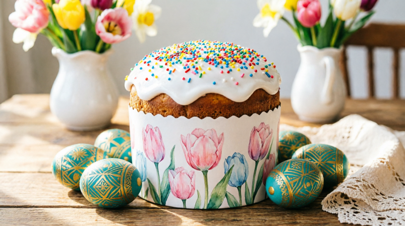 - Нанесите глазурь на полностью остывший кулич. Сразу украсьте посыпкой, орехами или ягодами, пока поверхность не застыла.