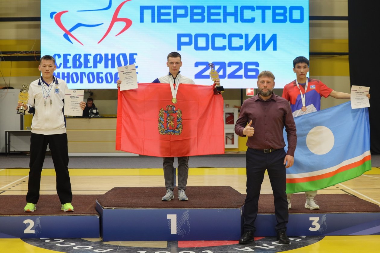 SakhalinMedia, 6 апреля. В Южно-Сахалинске завершилось первенство России по северному многоборью (0+) среди юниоров и юниорок 16-17 лет. В финальный день соревнований более 100 спортсменов из Красноярского края, Ханты-Мансийского и Ямало-Ненецкого автономных округов, Камчатского и Хабаровского краёв, Чукотского автономного округа, Республики Саха (Якутия), Магаданской и Сахалинской областей, состязались в прыжках через нарты. По итогам игры первое место в командном зачете взяли спортсмены из Якутии, сообщили в пресс-службе министерства спорта Сахалинской области.